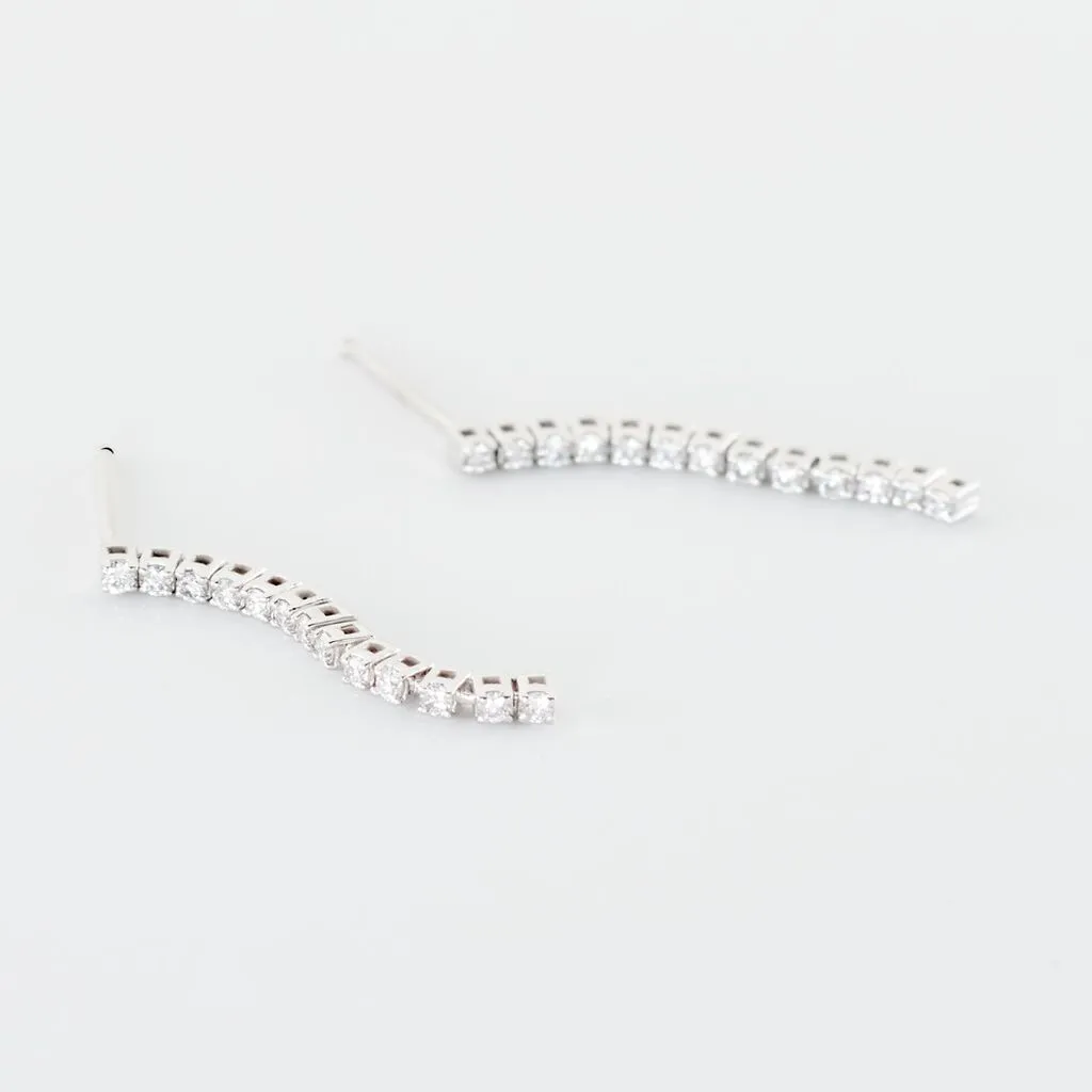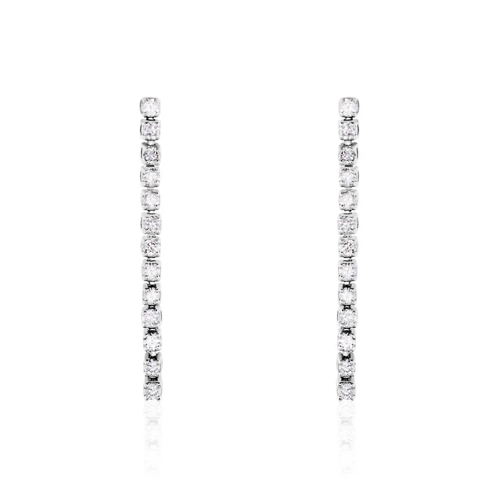 Boucles D’oreilles Pendantes Or Blanc 750/1000 Riviere De Diamants Synthetiques Sertis Griffes
