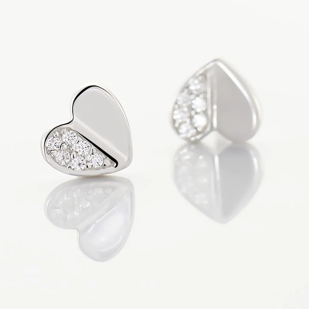 Boucles D’oreilles Argent Blanc 925/1000 Coeurs Oxydes De Zirconium