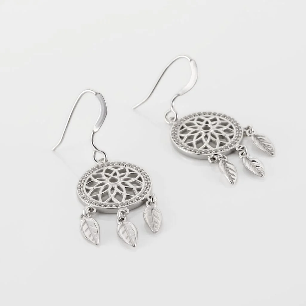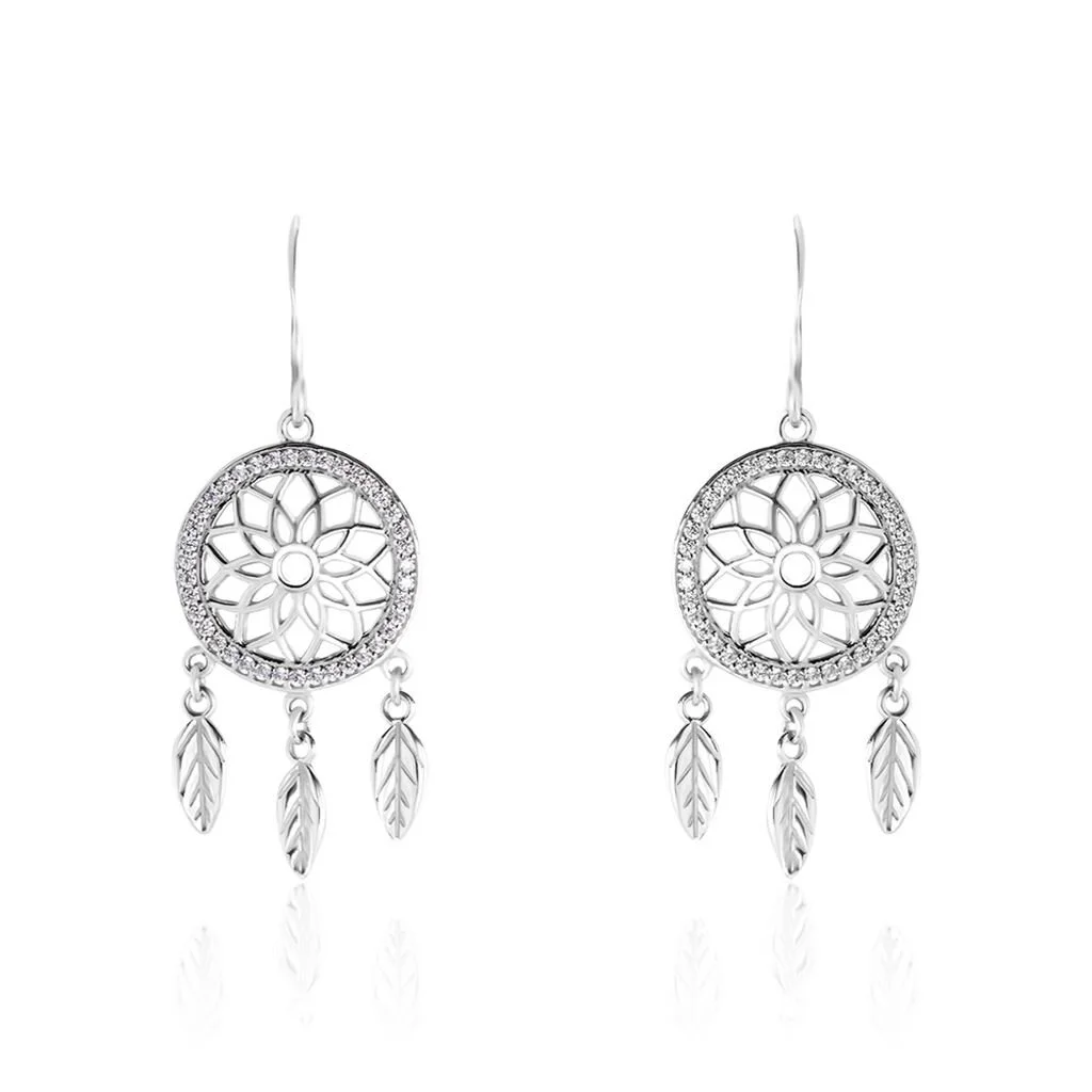 Boucles D’oreilles Pendantes Argent Blanc 925/1000 Attrape Rêve Oxydes De Zirconium