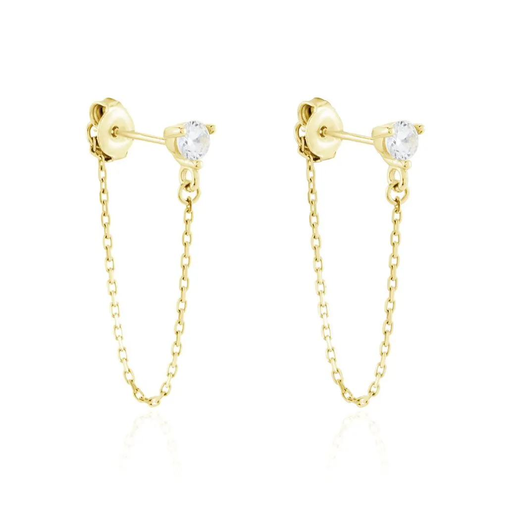 Boucles D’oreilles Pendantes Or Jaune 375/1000 Chaines Oxydes De Zirconium