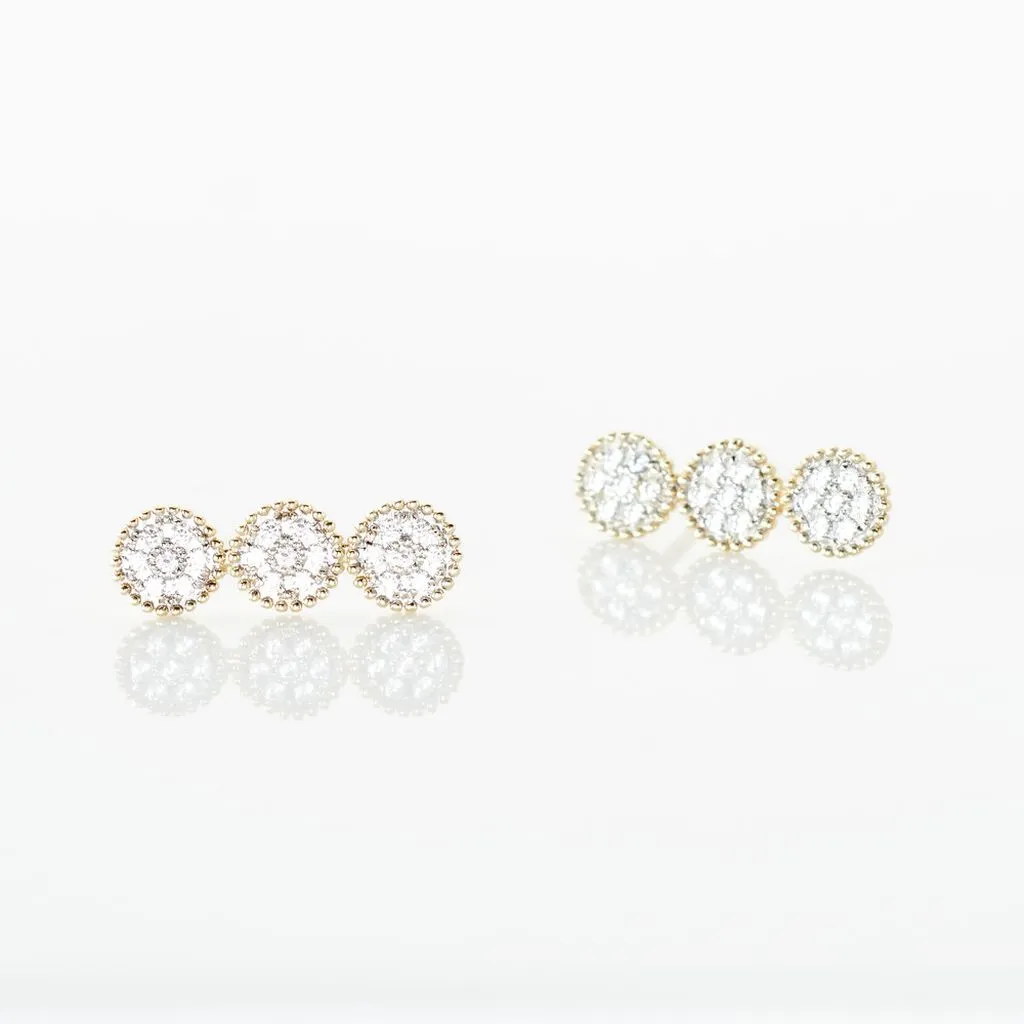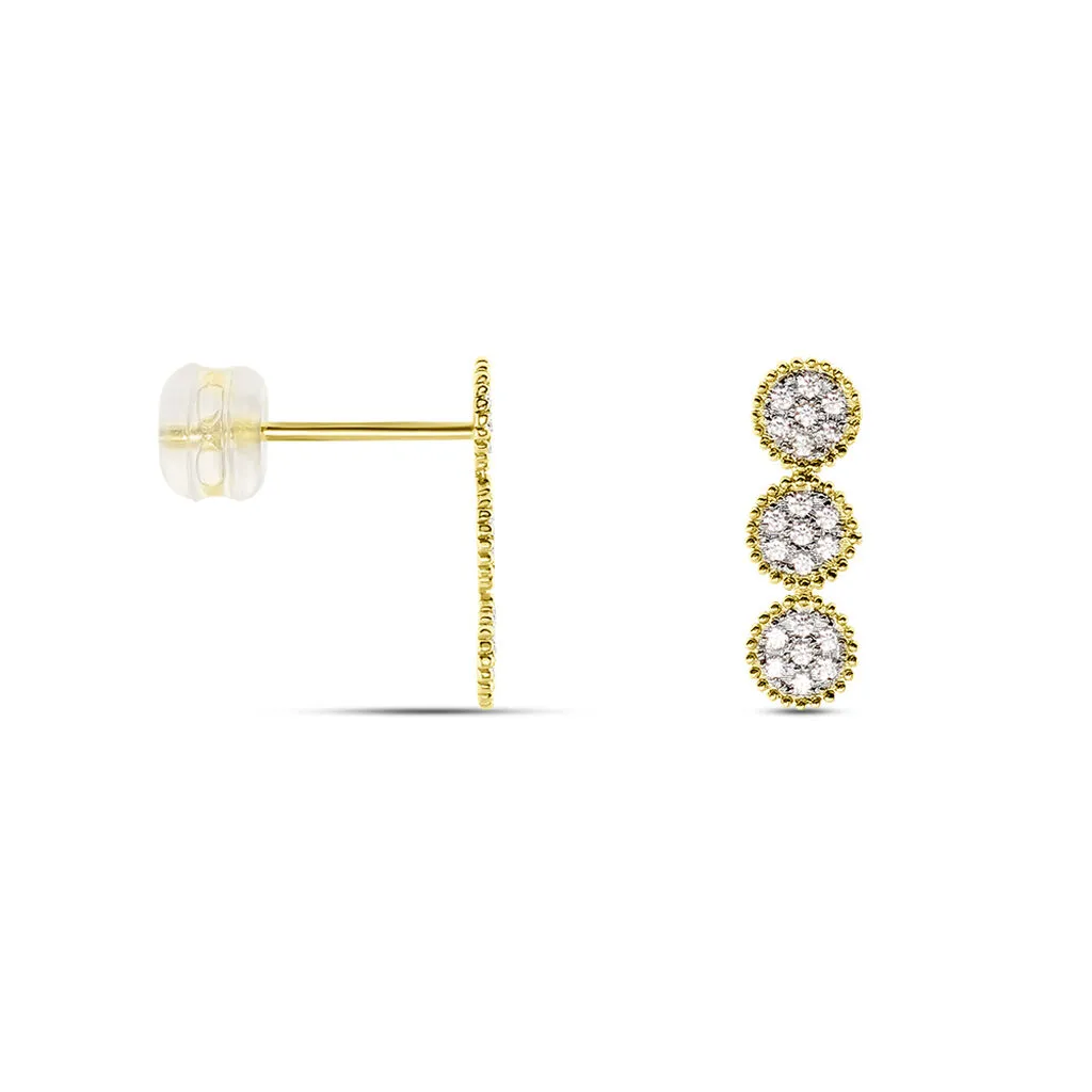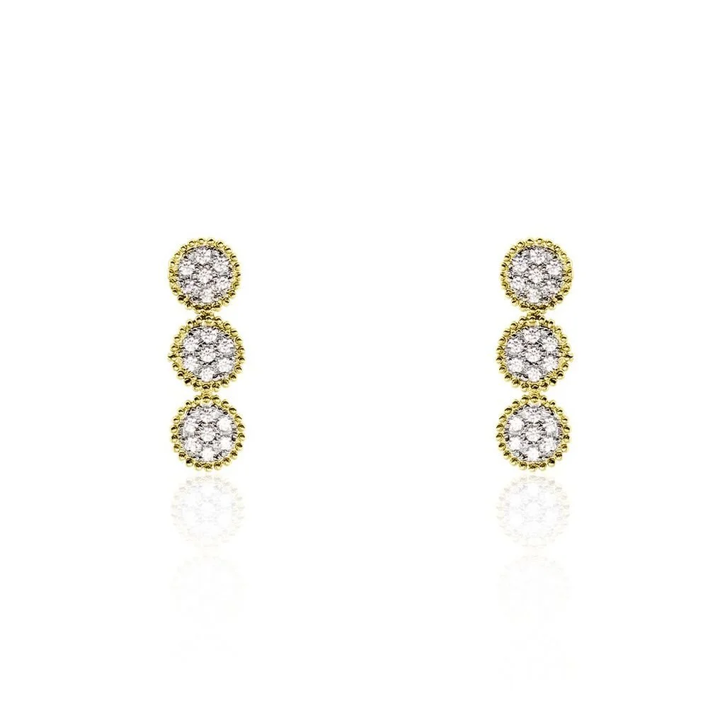 Boucles D’oreilles Pendantes Or Jaune 375/1000 3 Cercles Pastille Pavage Oxyde Blanc