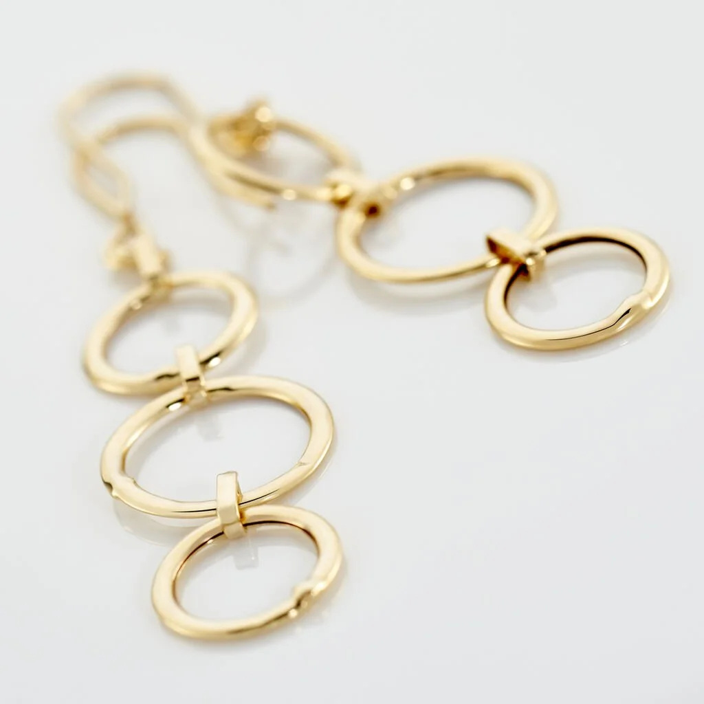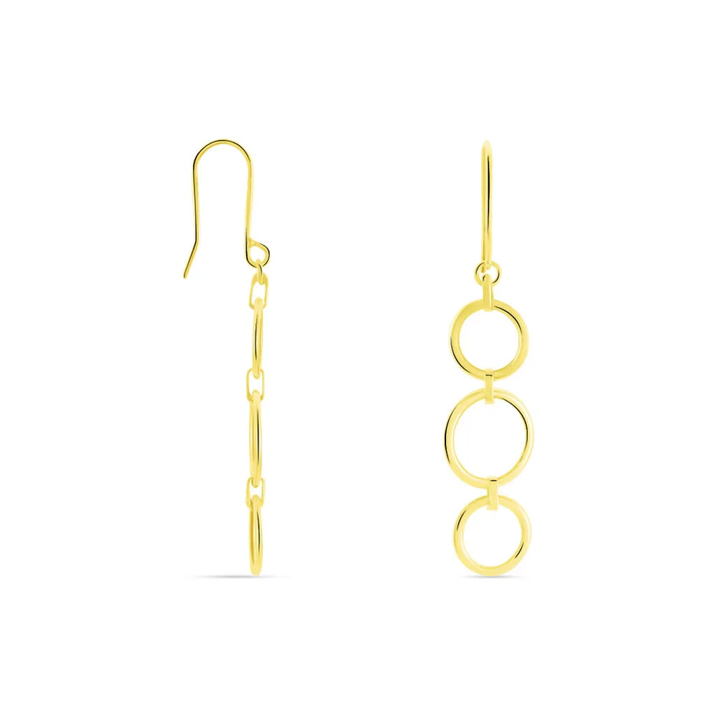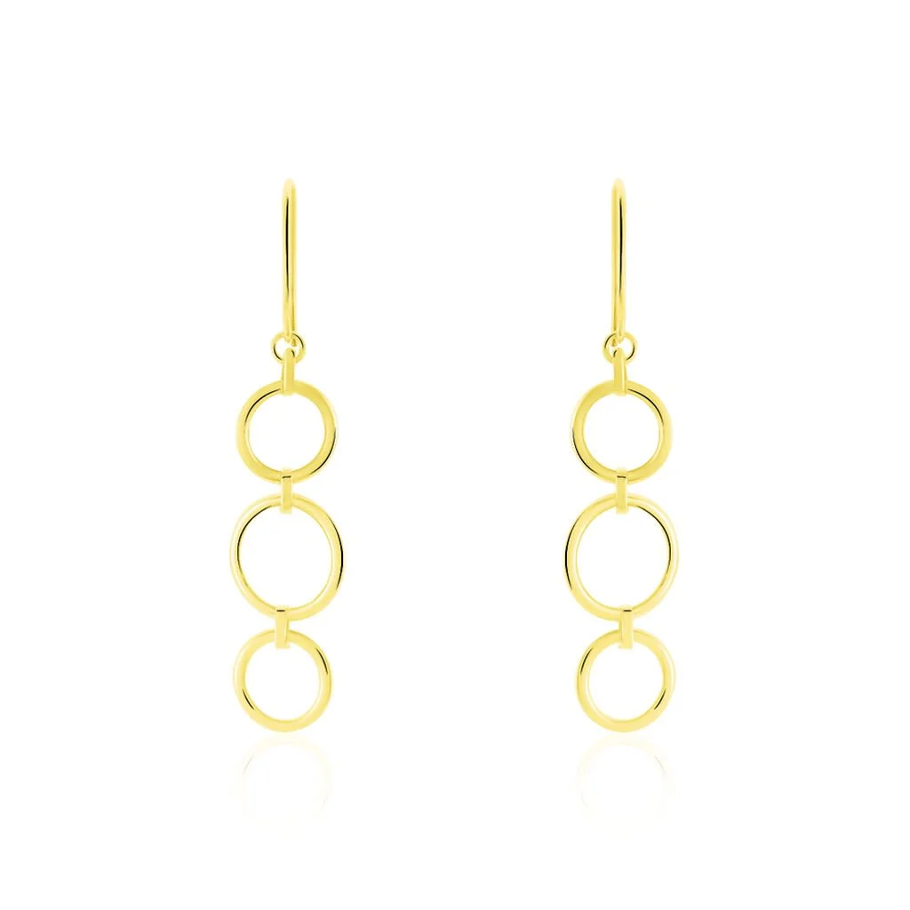 Boucles D’oreilles Or Jaune 375/1000 3 Maillons Ronds Lisses