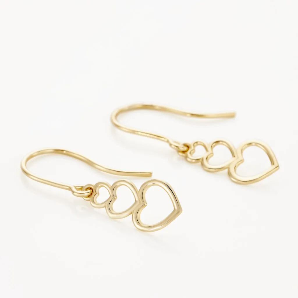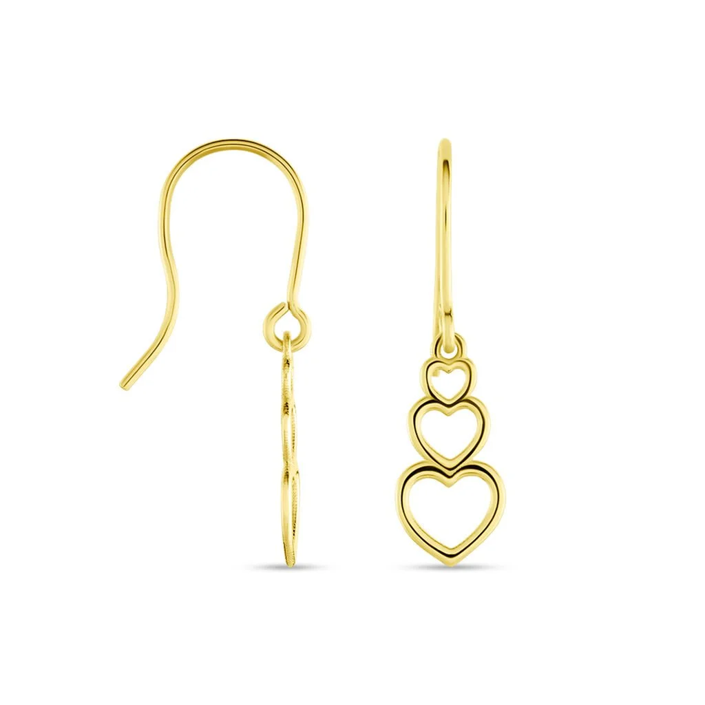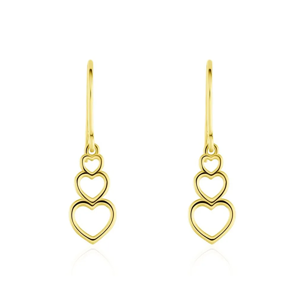 Boucles D’oreilles Pendantes Or Jaune 375/1000 Triple Cœurs