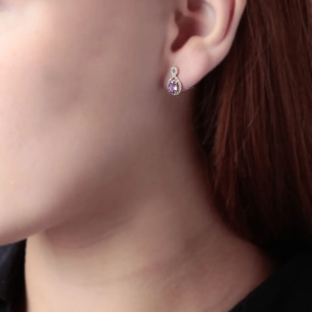 Boucles D’oreilles Pendantes Passion Or Jaune Amethyste Et Oxyde