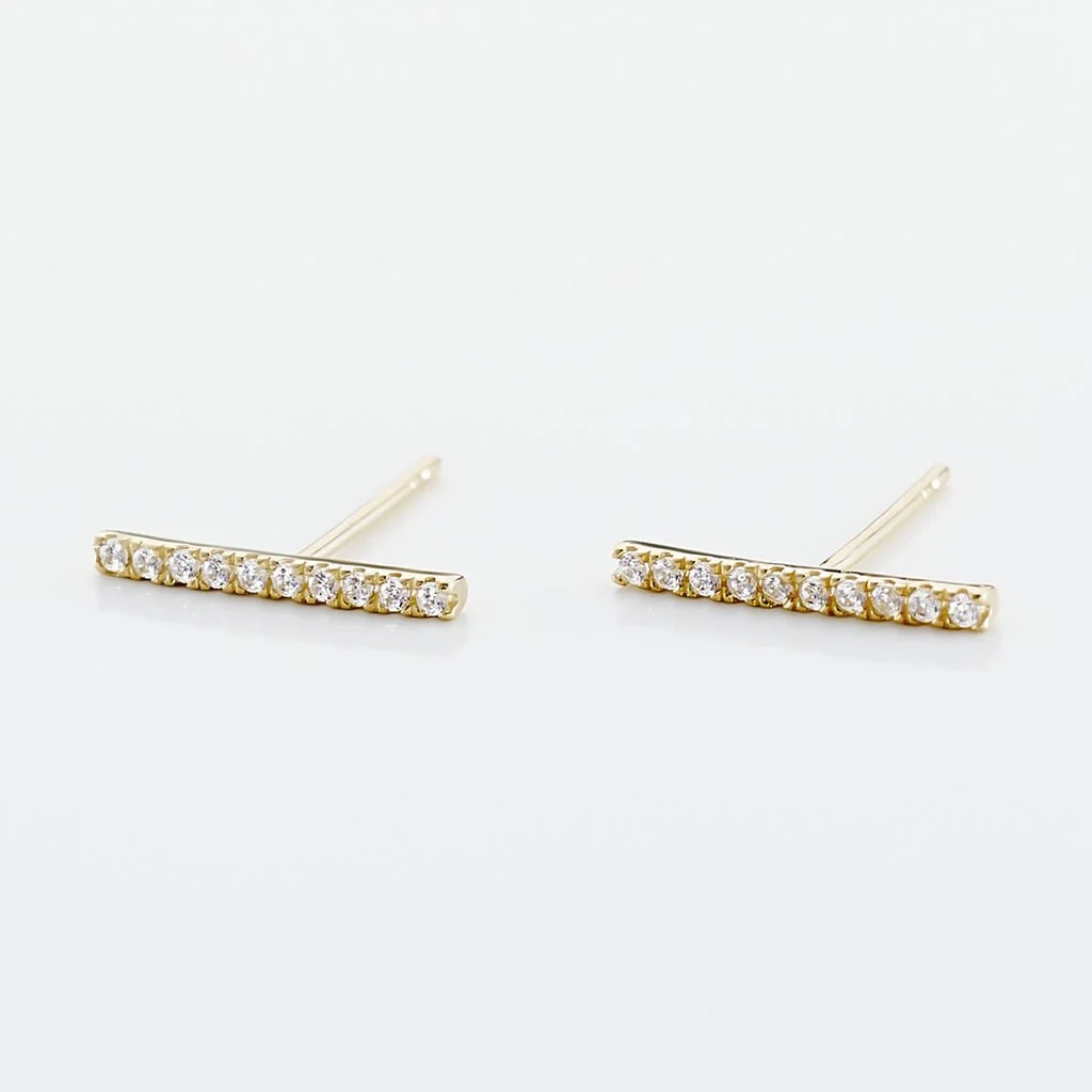 Boucles D’oreilles Or Jaune 375/1000 Formes Barrettes Pavage Oxydes De Zirconium