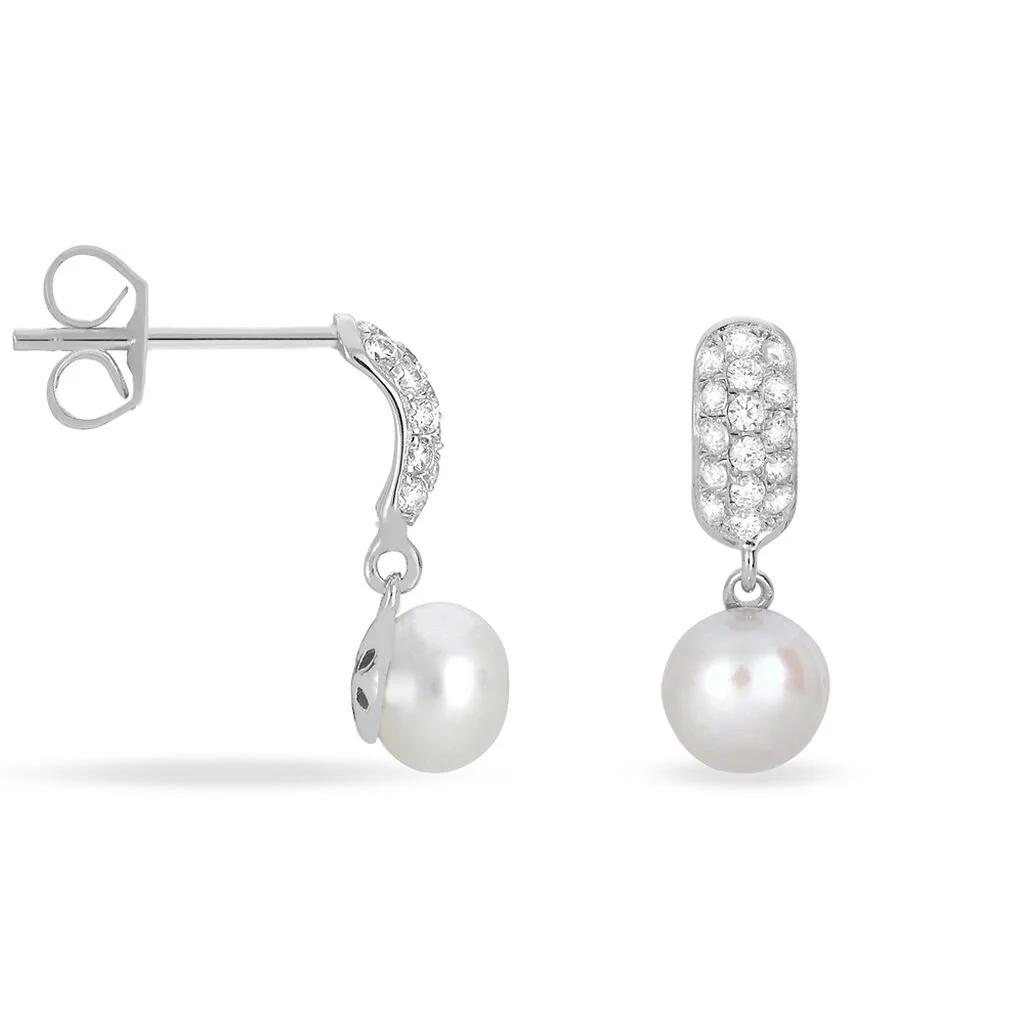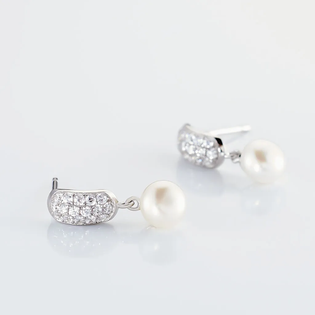 Boucles D’oreilles Pendantes Providence Argent Perle De Culture Oxyde