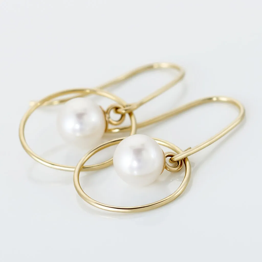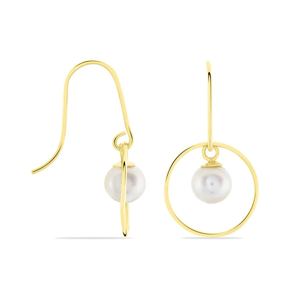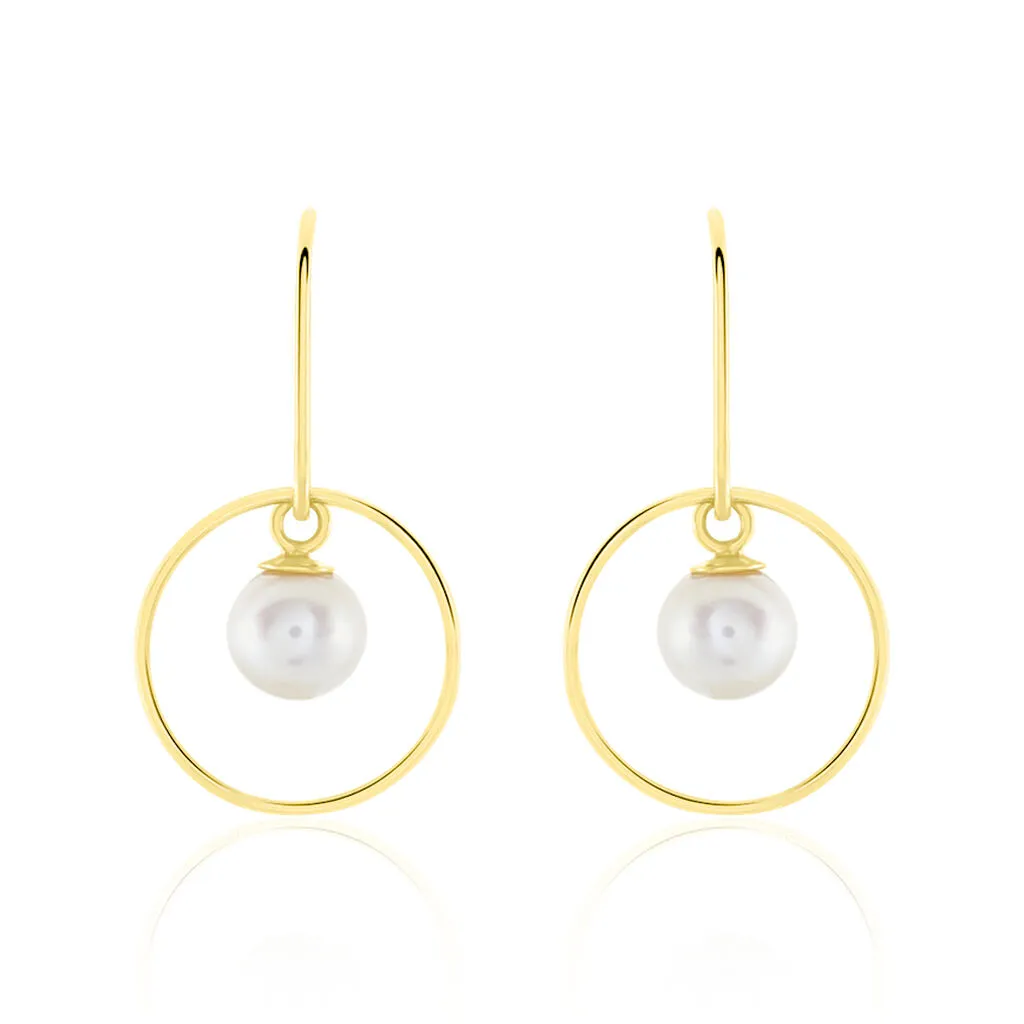 Boucles D’oreilles Or Jaune 375/1000 Cercles Et Perles De Culture