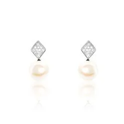 Boucles D’oreilles Argent Blanc 925/1000 8-8.5m Losanges Oxyde