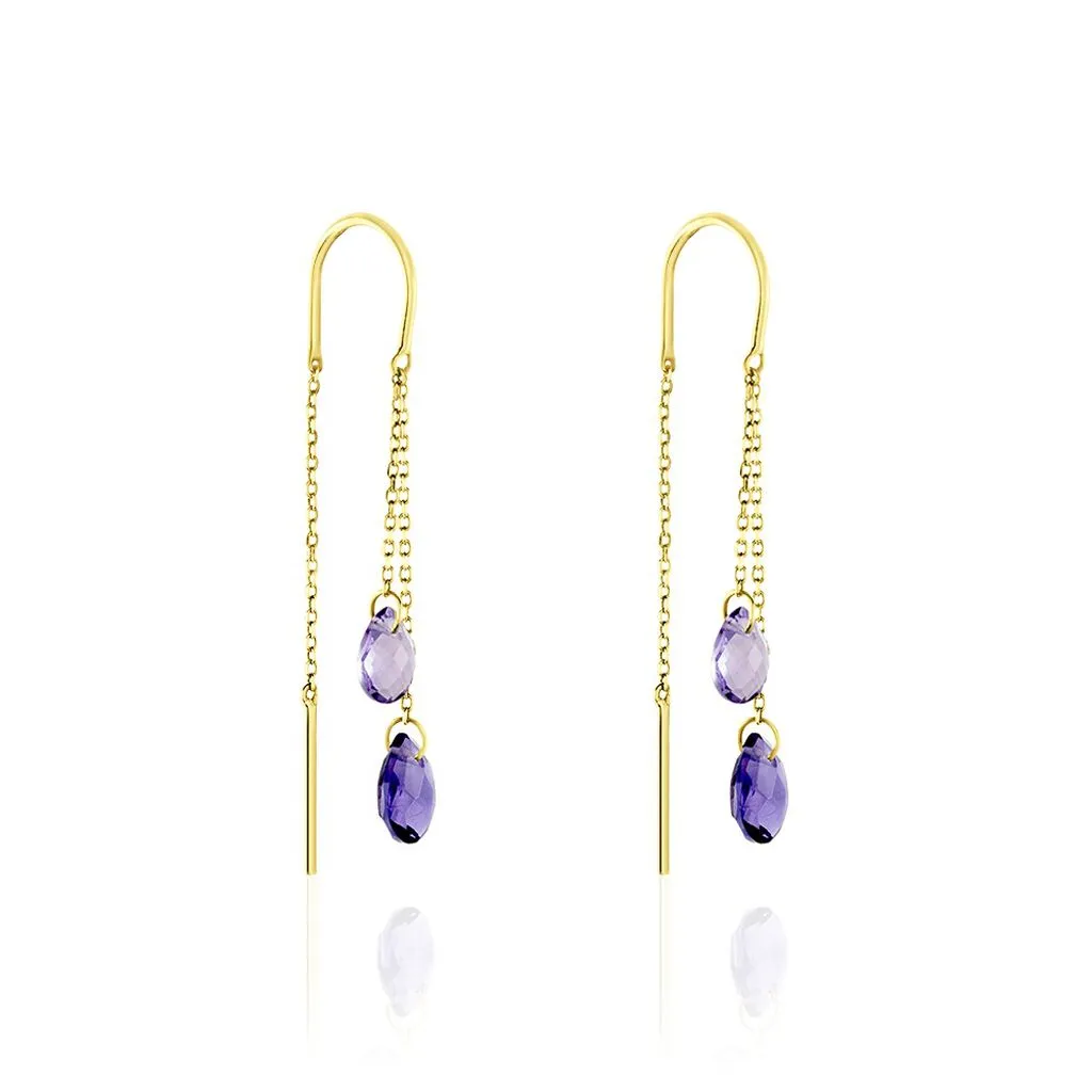 Boucles D’oreilles Pendantes Terence Or Jaune Amethyste