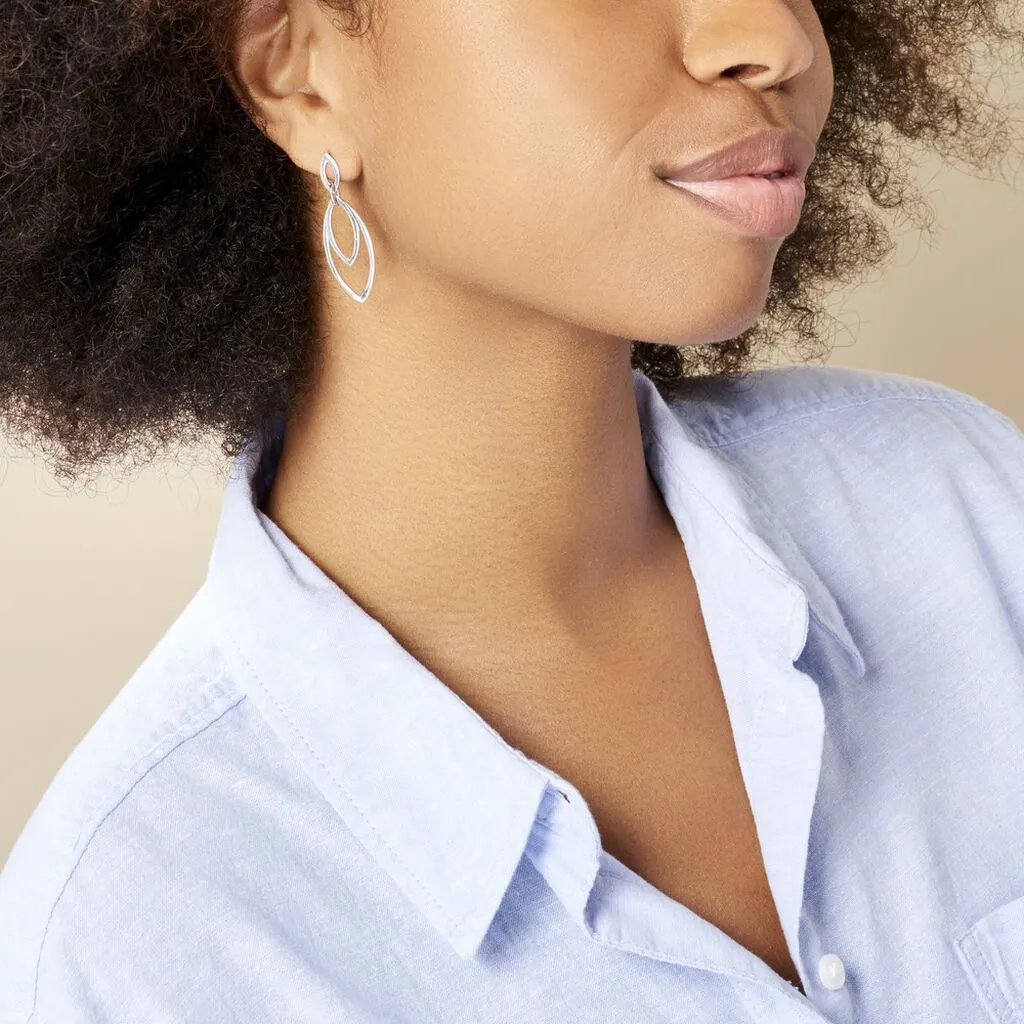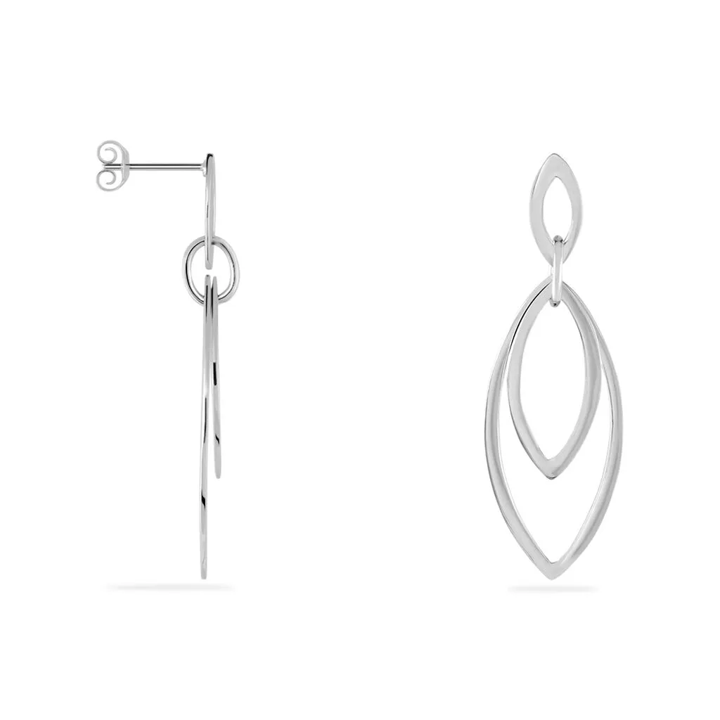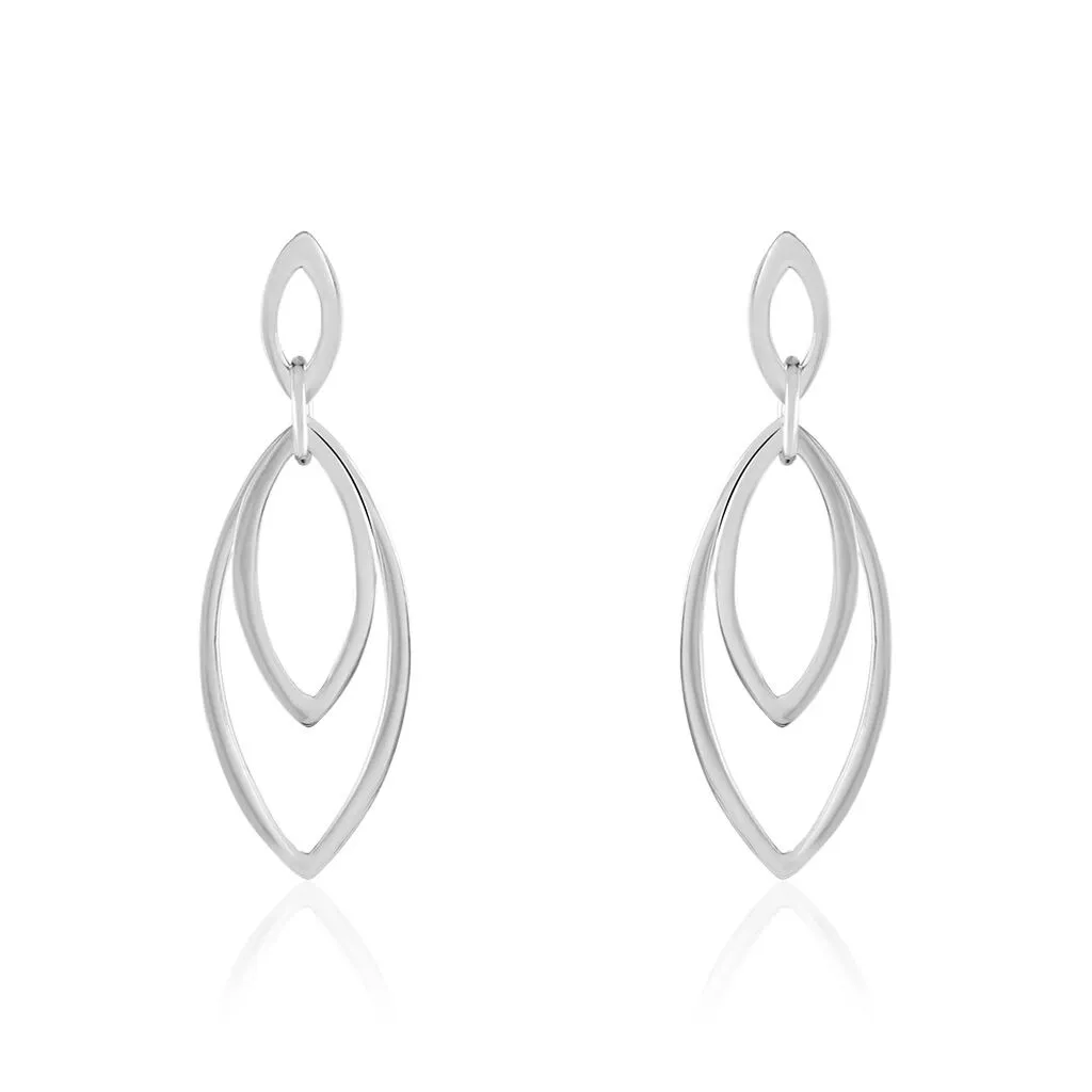 Boucles D’oreilles Pendantes Argent Blanc 925/1000 Ovales Ajoures