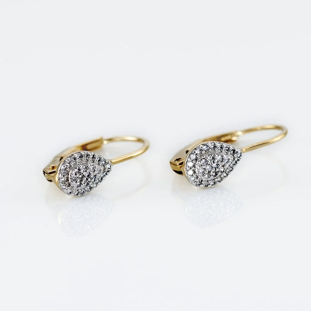 Boucles D’oreilles Or Jaune 375/1000 Dormeuses Forme Goutte Pavage Diamants