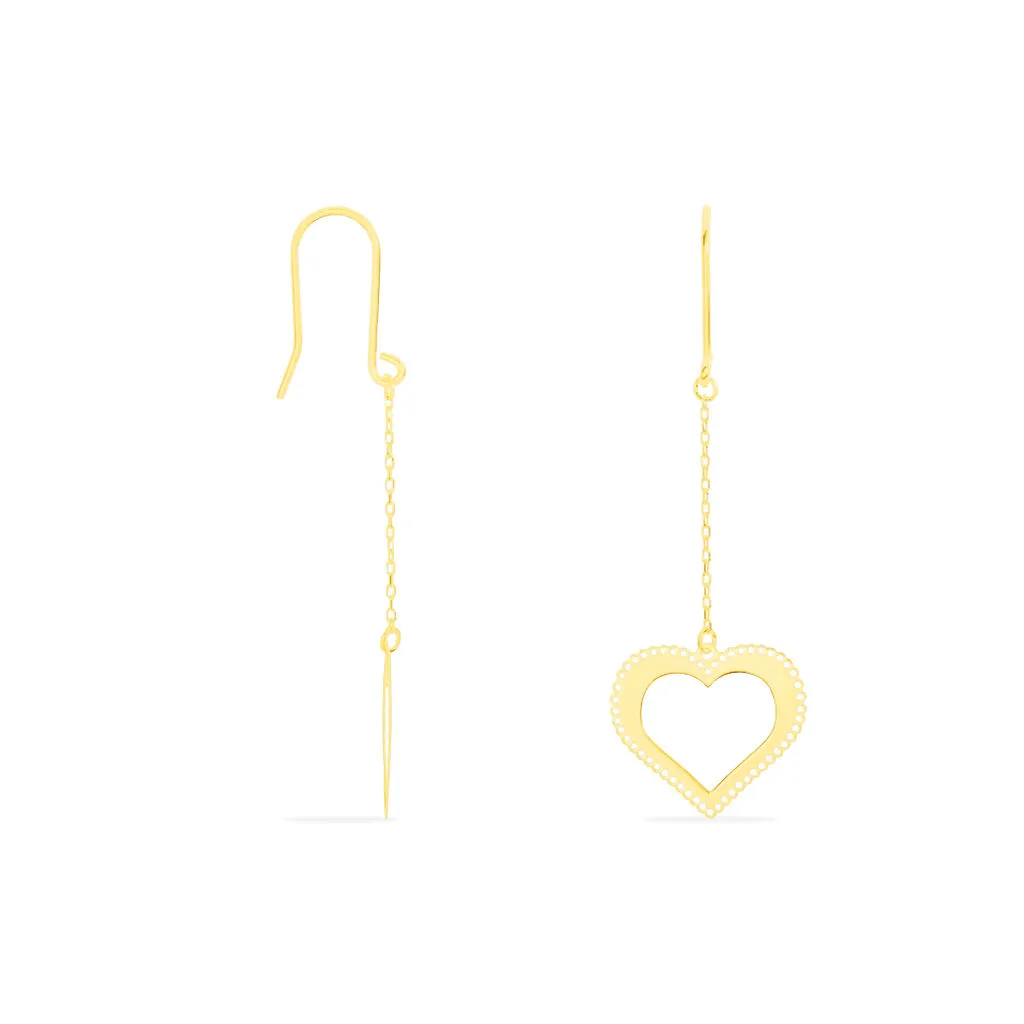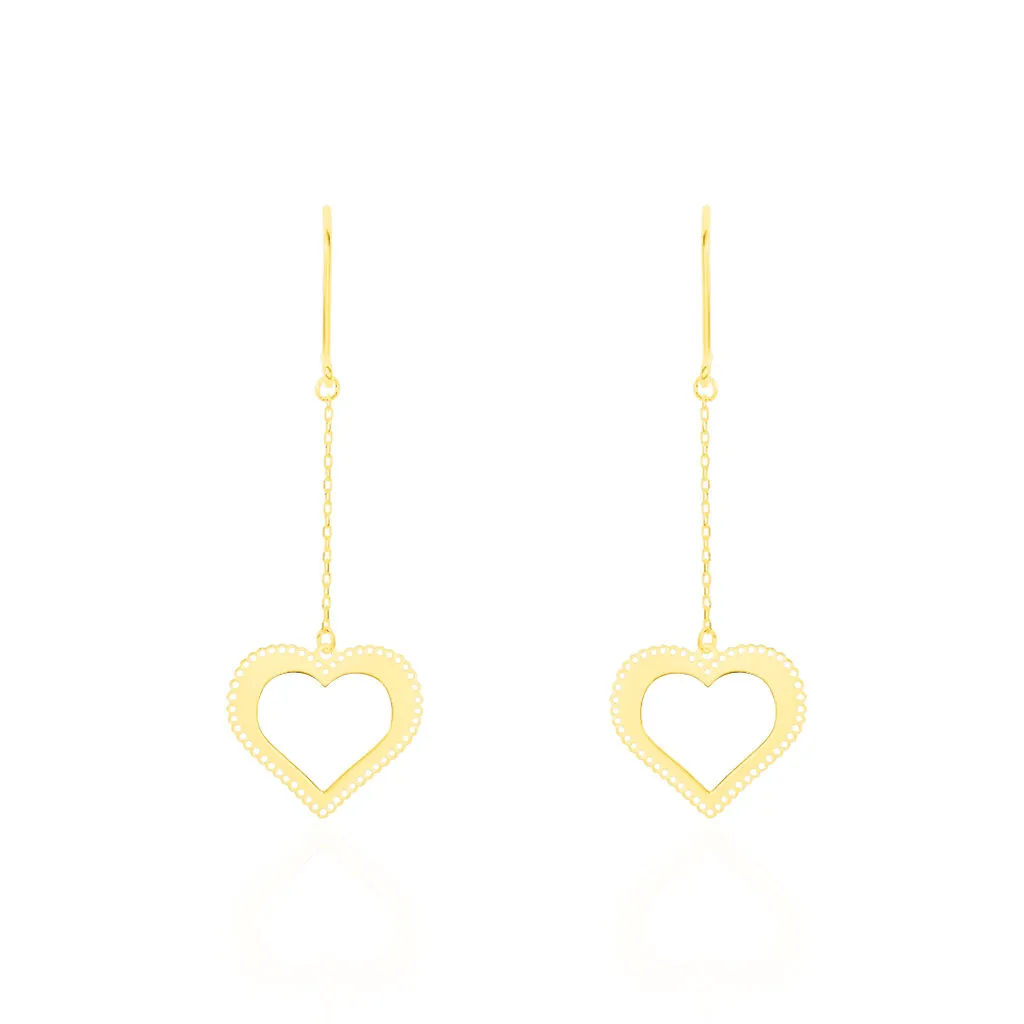 Boucles D’oreilles Or Jaune 375/1000 Pendantes Forme Cœurs Ajoures Liserets Dentelles