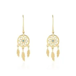 Boucles D’oreilles Plaqué Or Jaune Attrape Rêves Turquoises