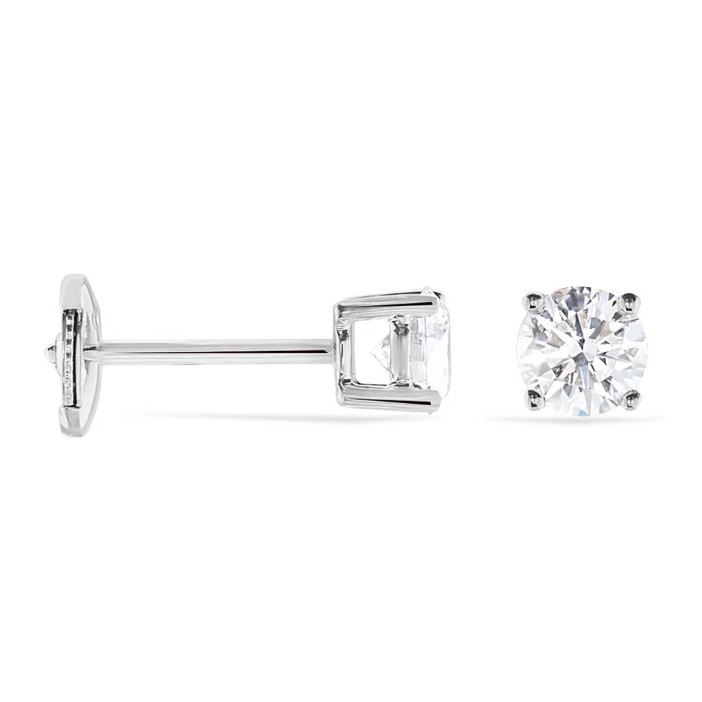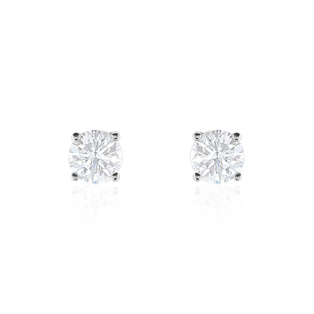 Boucles D’oreilles Puces Or Blanc 750/1000 Diamants Synthétiques 0.80ct Serti 4 Griffes Systèmes Alpas