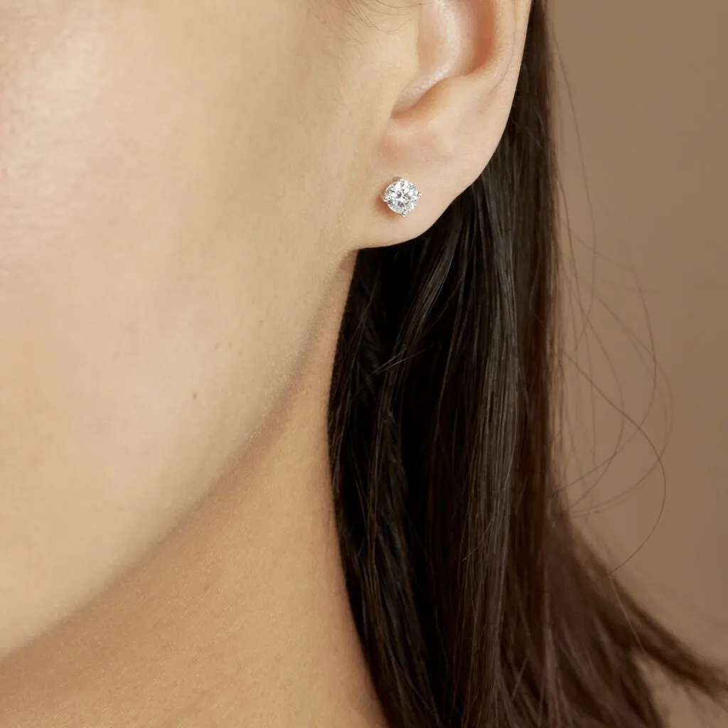 Boucles D’oreilles Puces 4 Griffes Or Blanc Diamant Synthetique