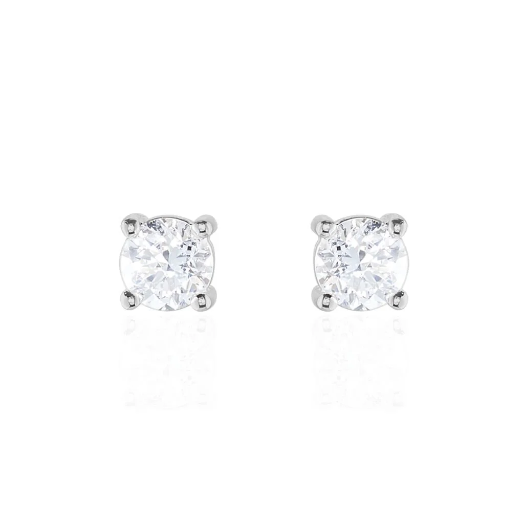 Boucles D’oreilles Puces 4 Griffes Or Blanc Diamant Synthetique