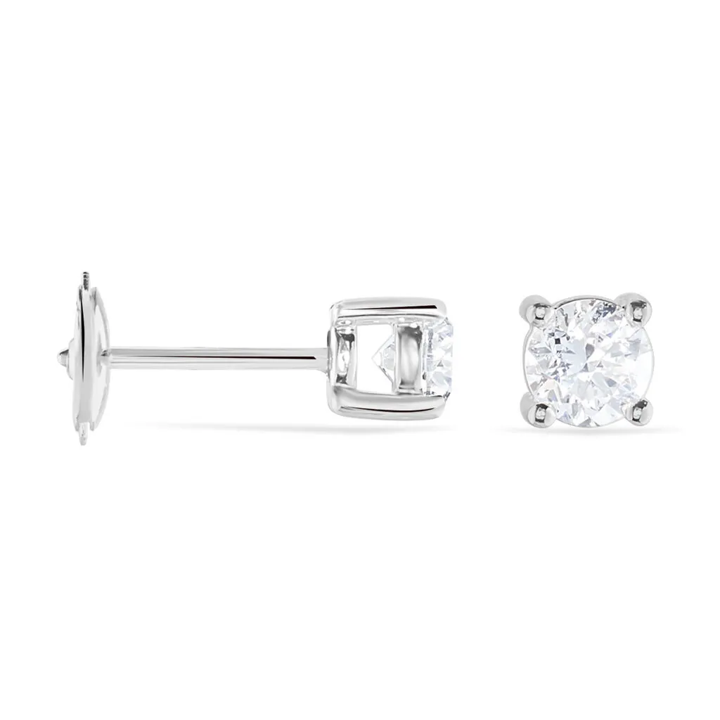 Boucles D’oreilles Puces Or Blanc 750/1000 Diamants Synthétiques 1.00ct Serti 4 Griffes Systèmes Alpas