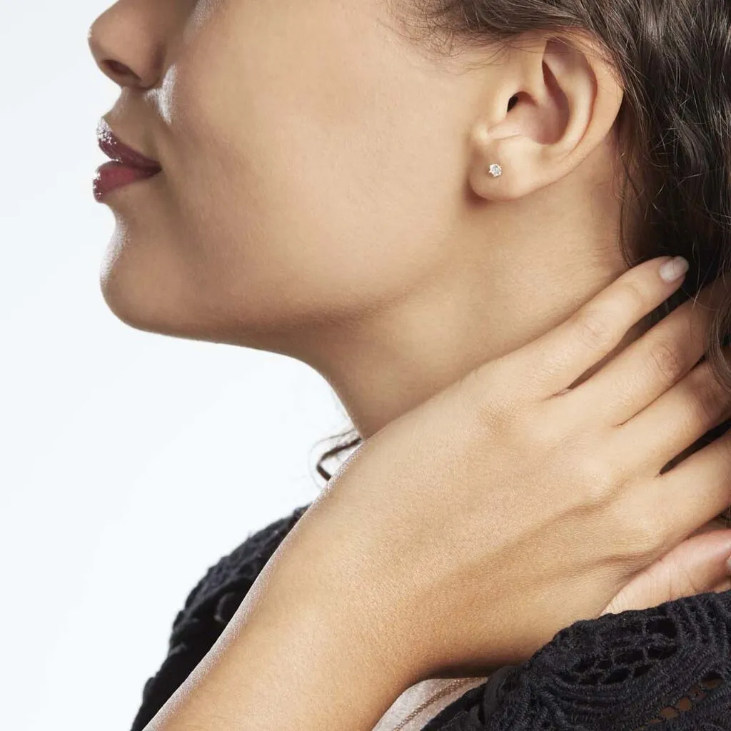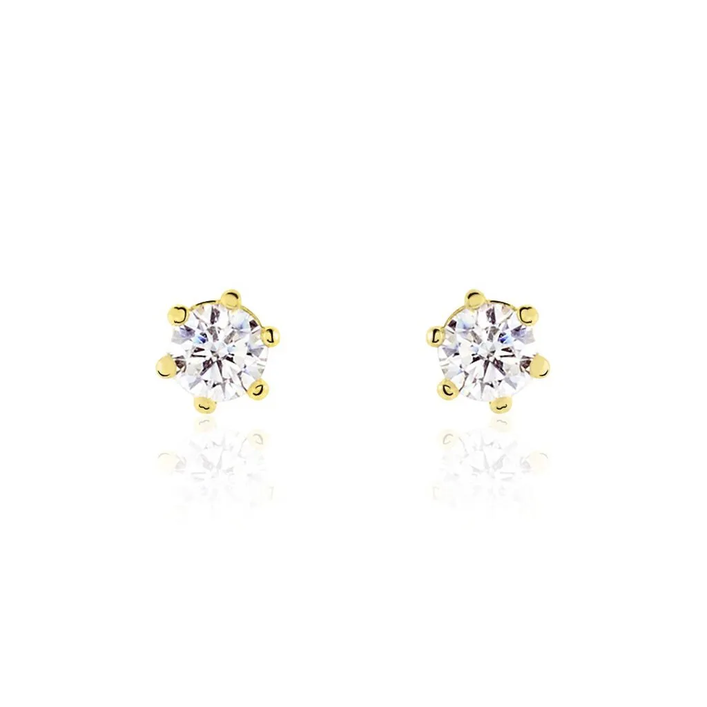 Boucles D’oreilles Puces Or Jaune 375/1000 Rondes Serti Griffes Oxydes De Zirconium 3x4mm