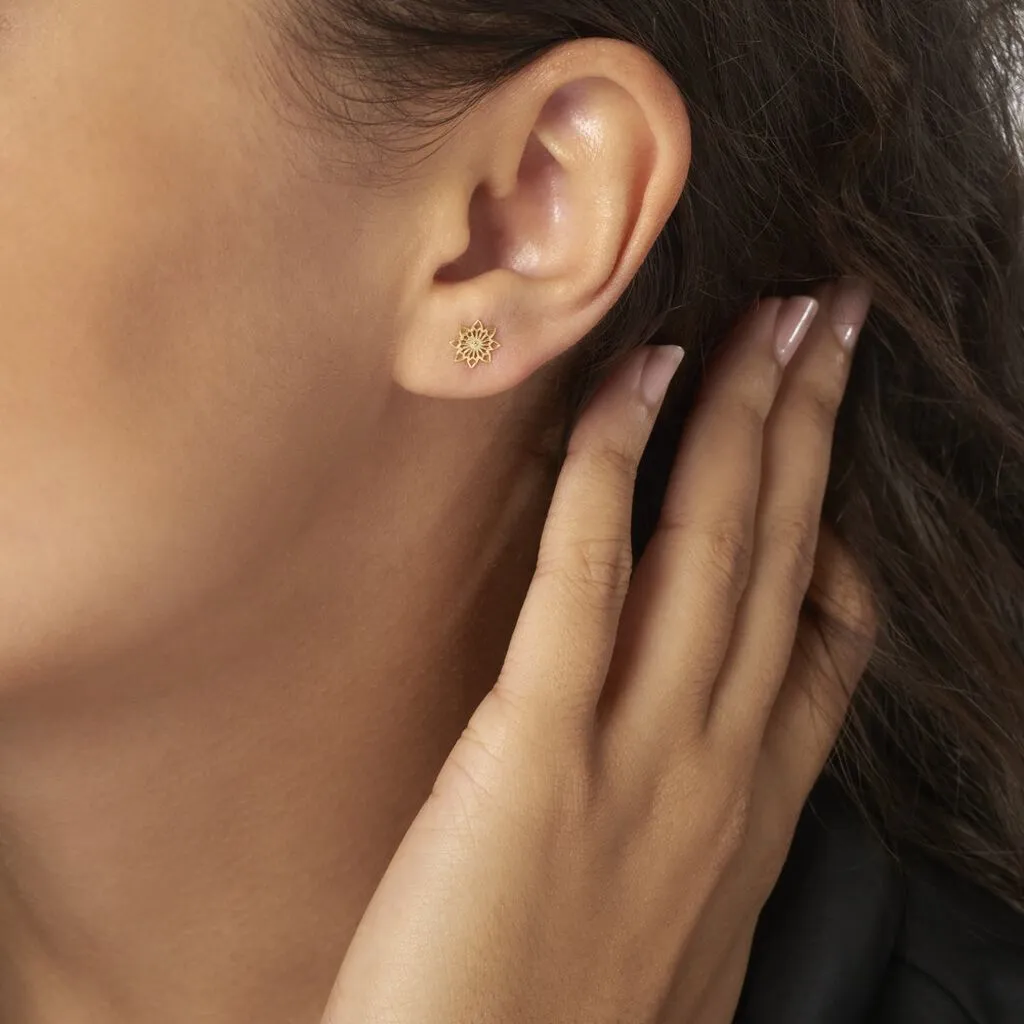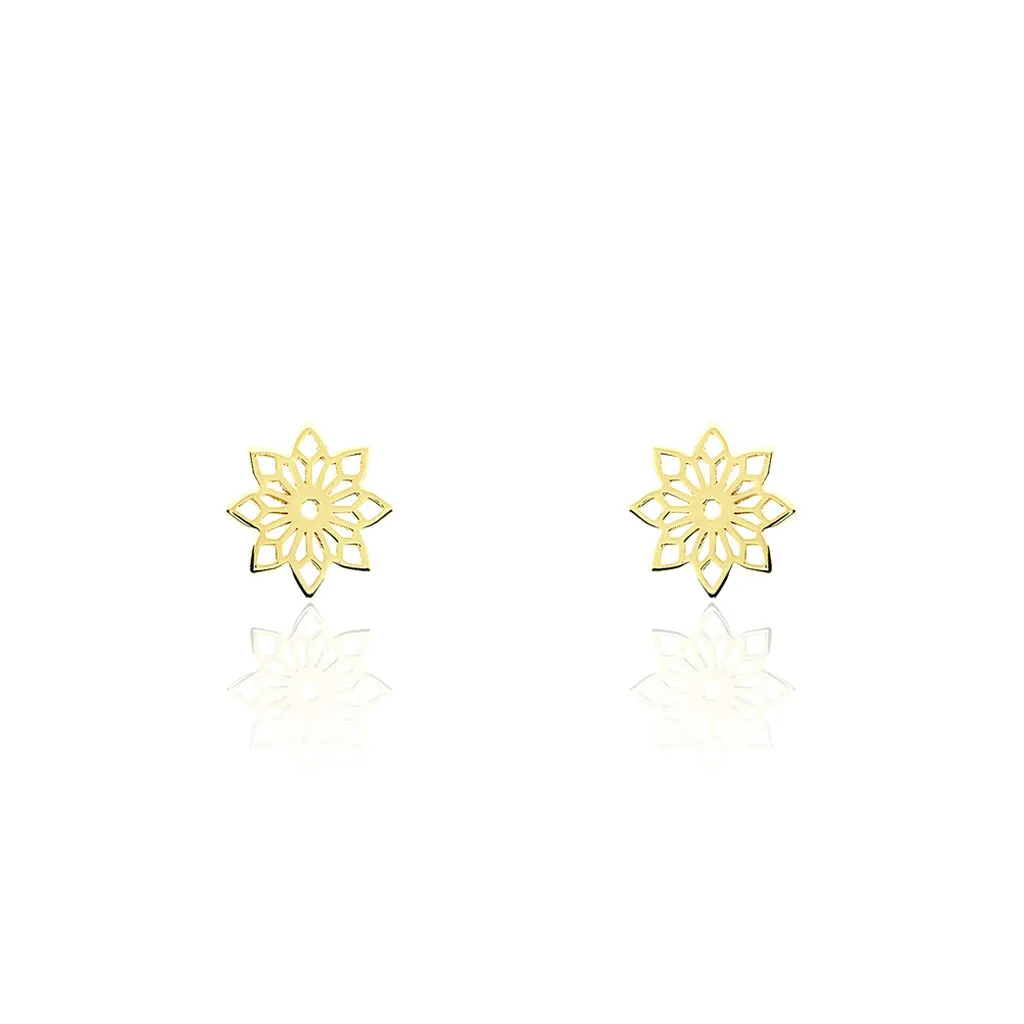 Boucles D’oreilles Or Jaune 375/1000 Puces Fleurs Origami