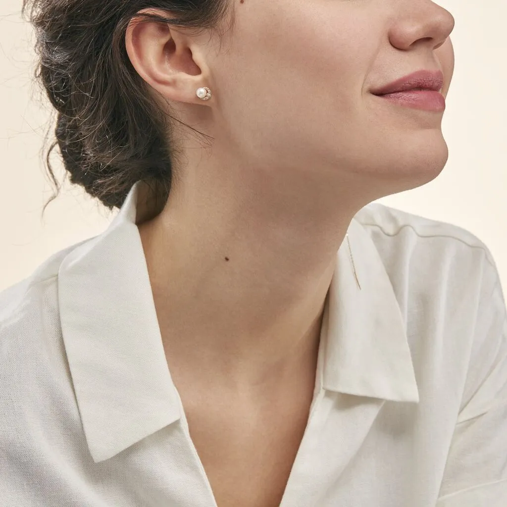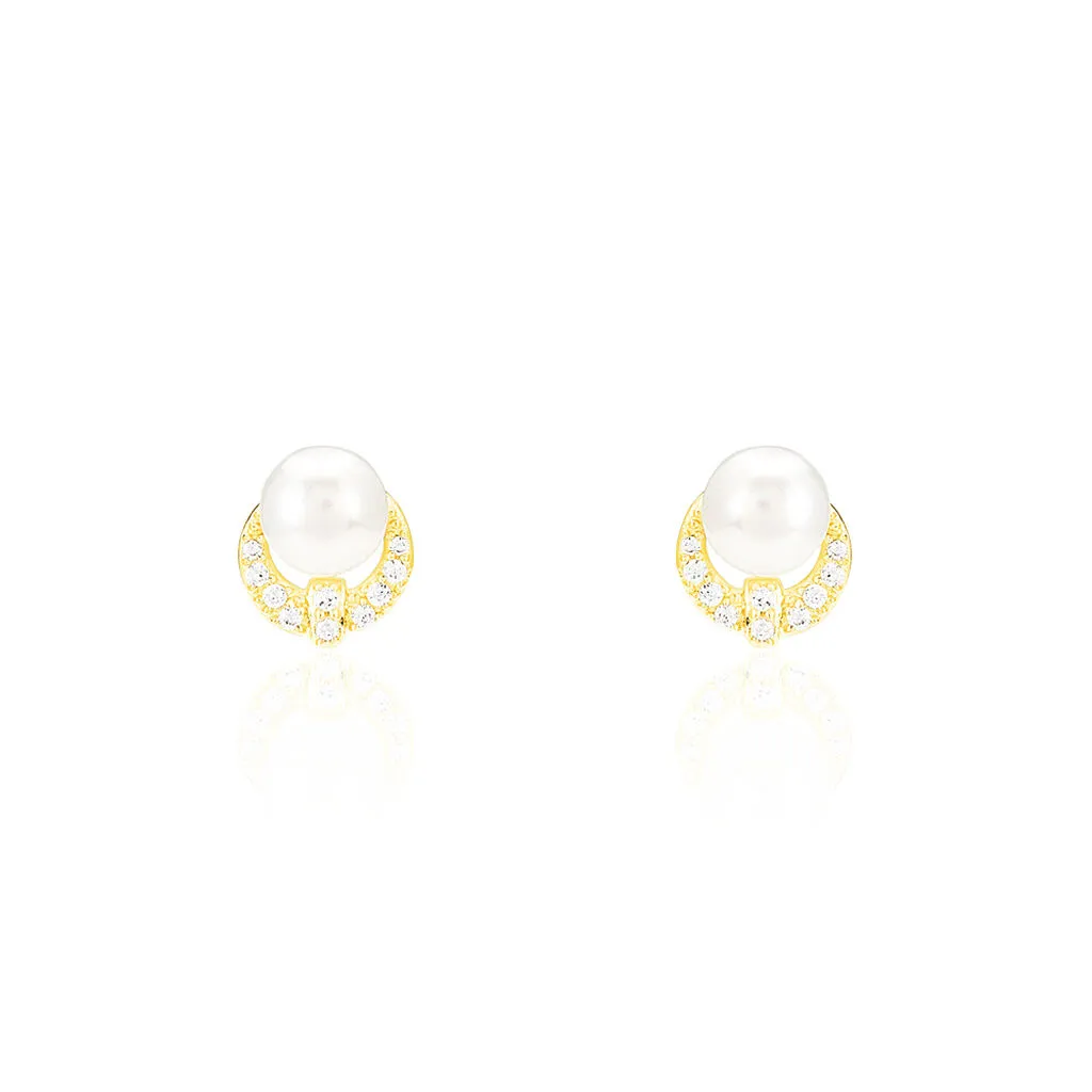 Boucles D’oreilles Puces Aloys Or Jaune Perle De Culture