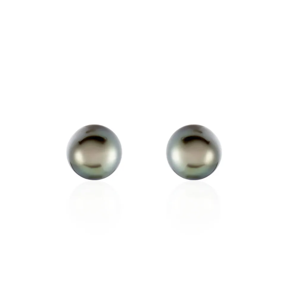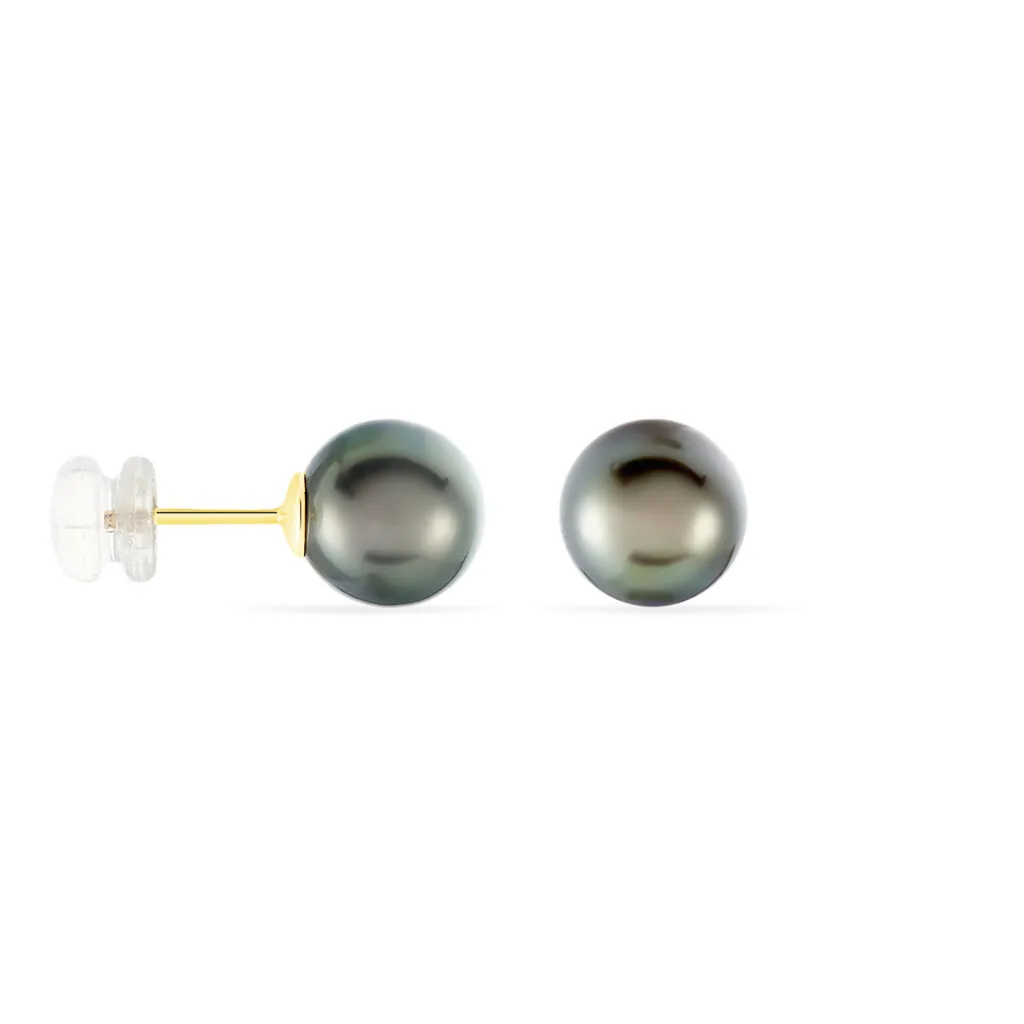 Boucles D’oreilles Or Jaune 375/1000 Perle De Culture Mers Du Sud Tahiti 8/9mm Semi-ronde