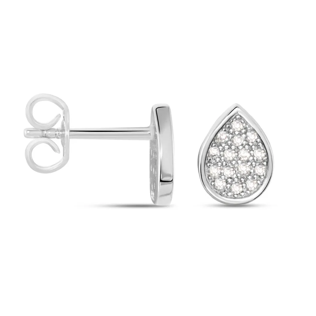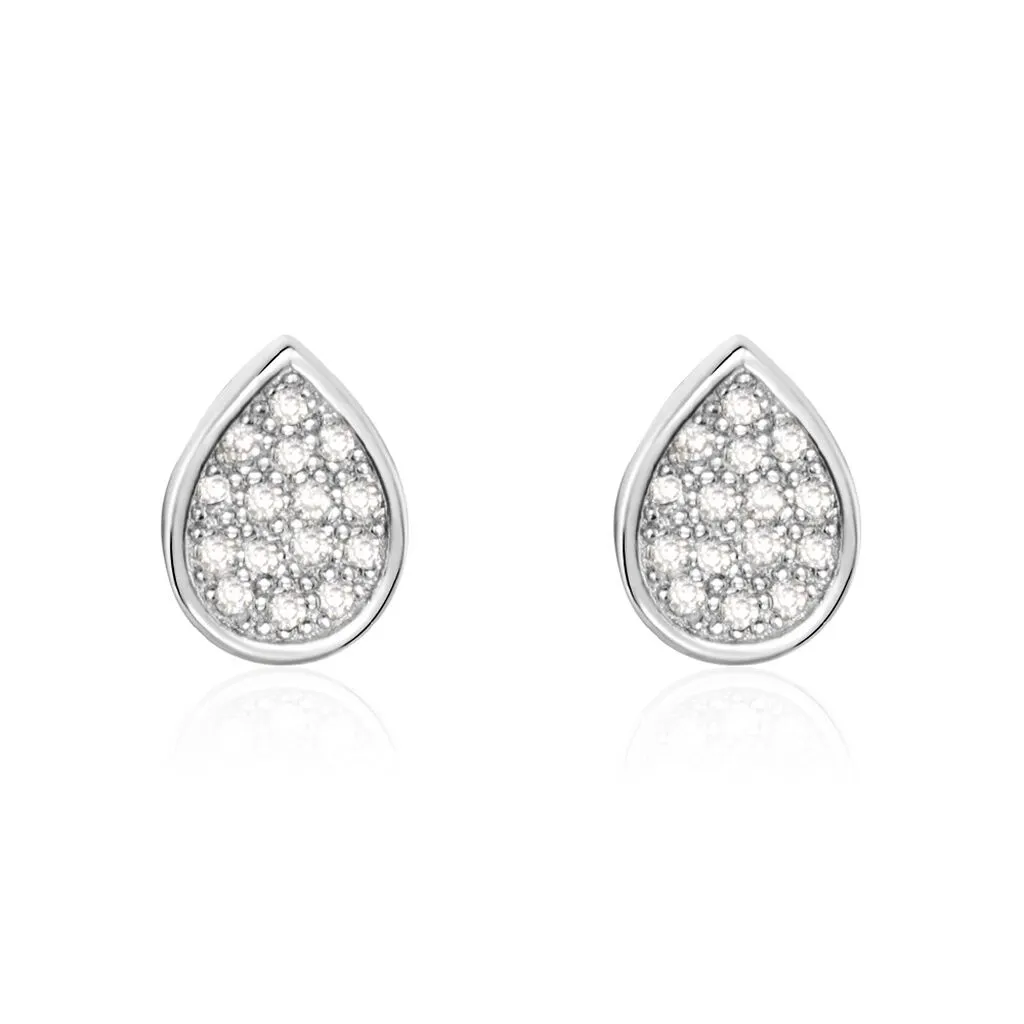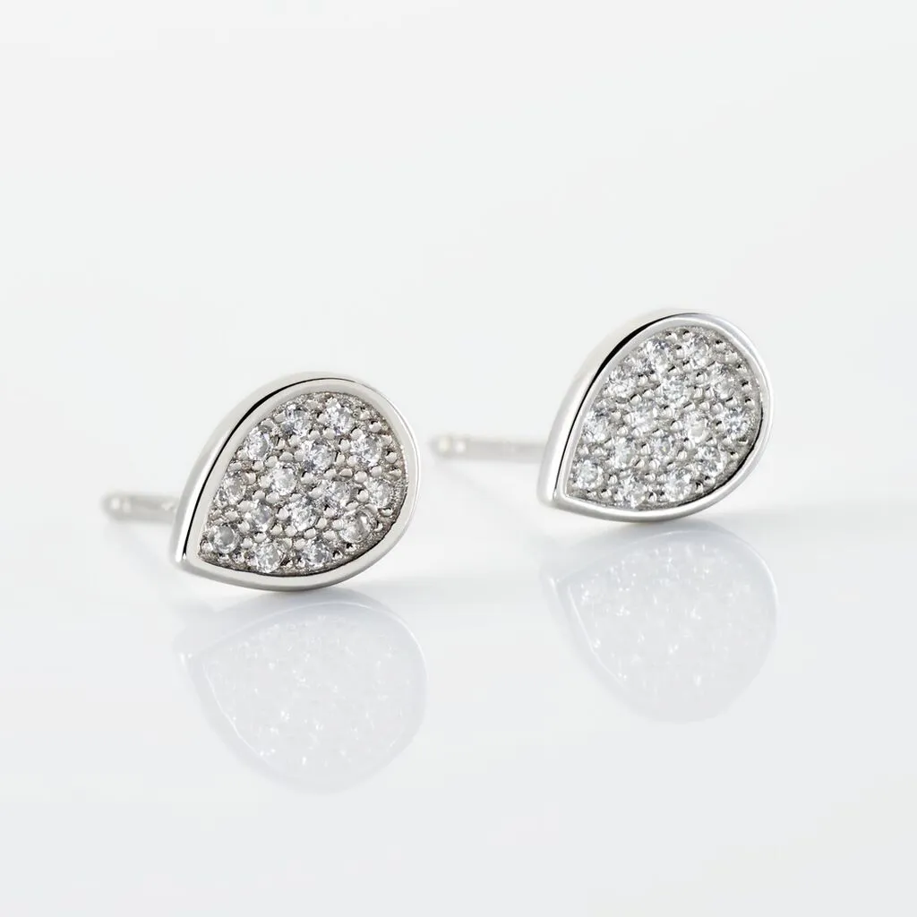 Boucles D’oreilles Puces Argent Blanc 925/1000 Gouttes Pavage Oxydes De Zirconium