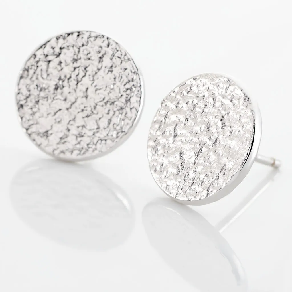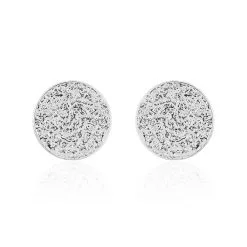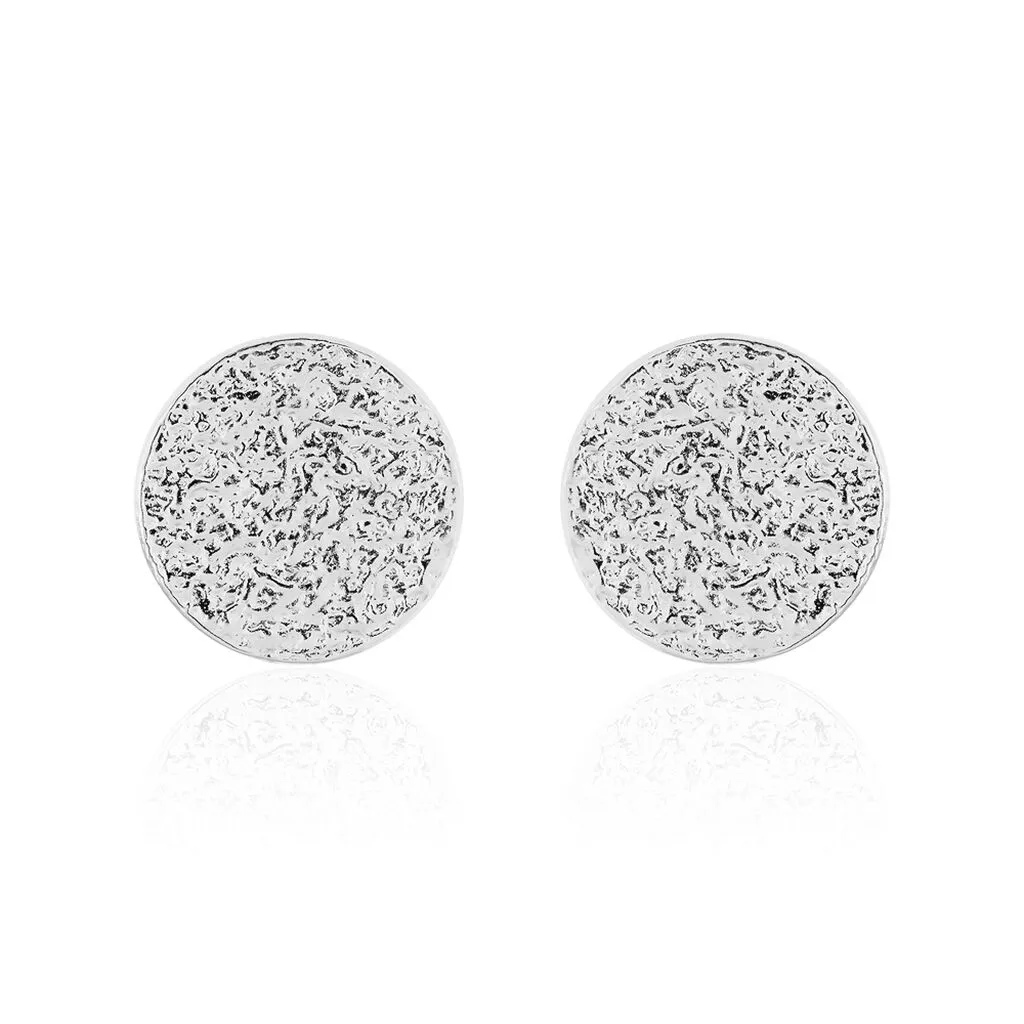 Boucles D’oreilles Puces Argent Blanc 925/1000 Pastilles Effet Martele