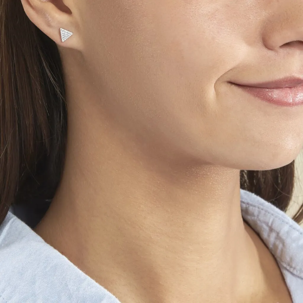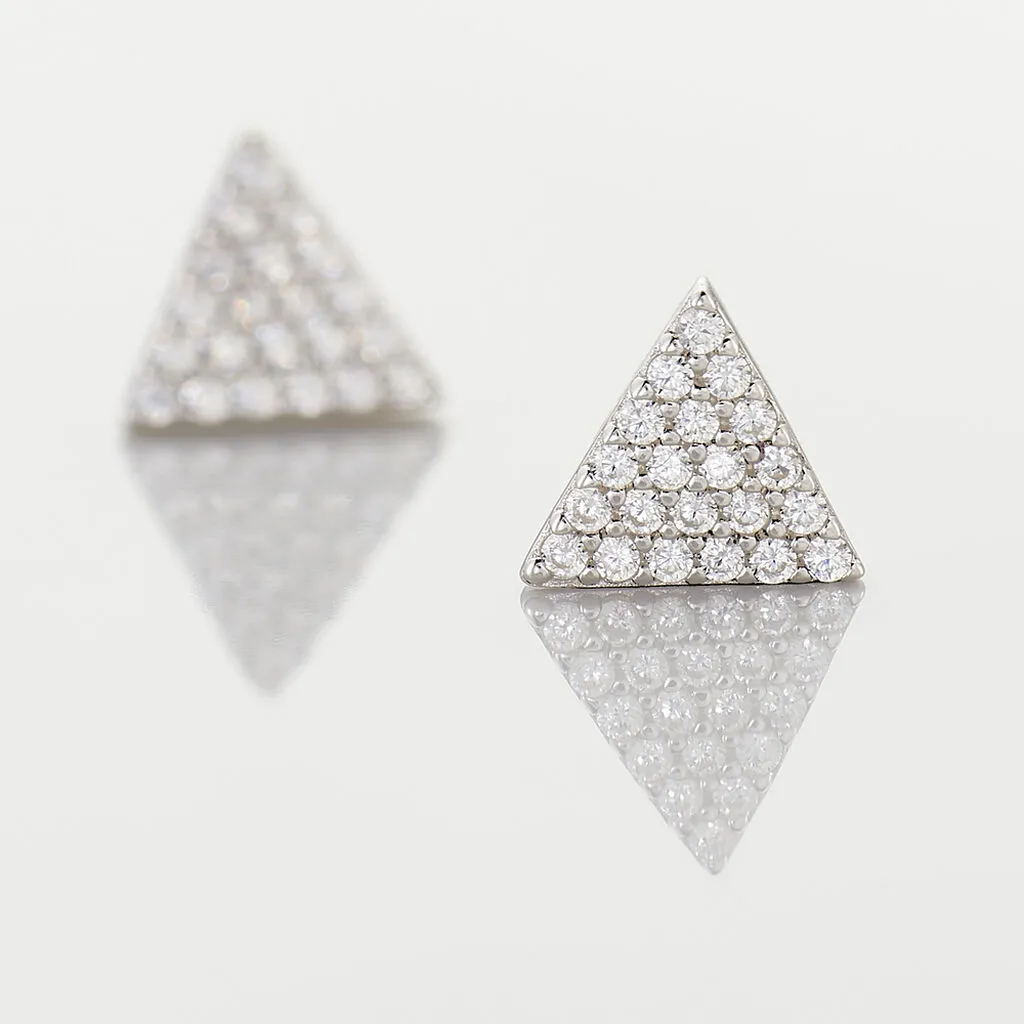 Boucles D’oreilles Argent Blanc 925/1000 Triangles Pavages Oxydes De Zirconium
