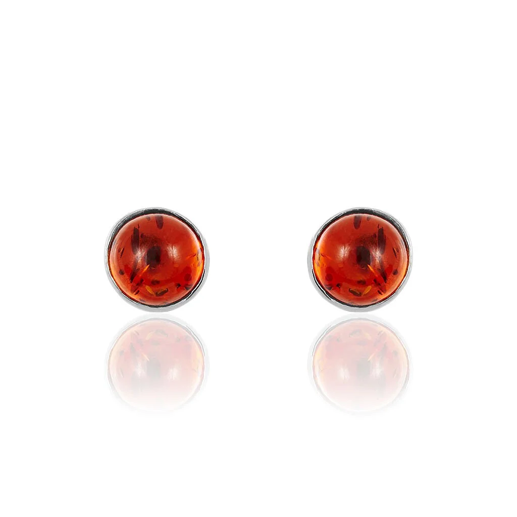 Boucles D’oreilles Puces Argent Blanc 925/1000 Ambres Cognac Diametre 6mm