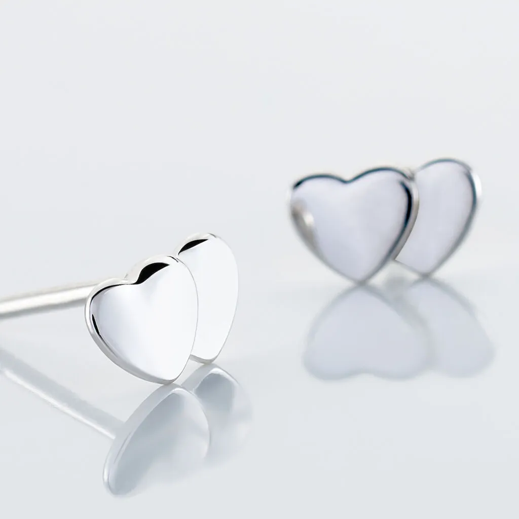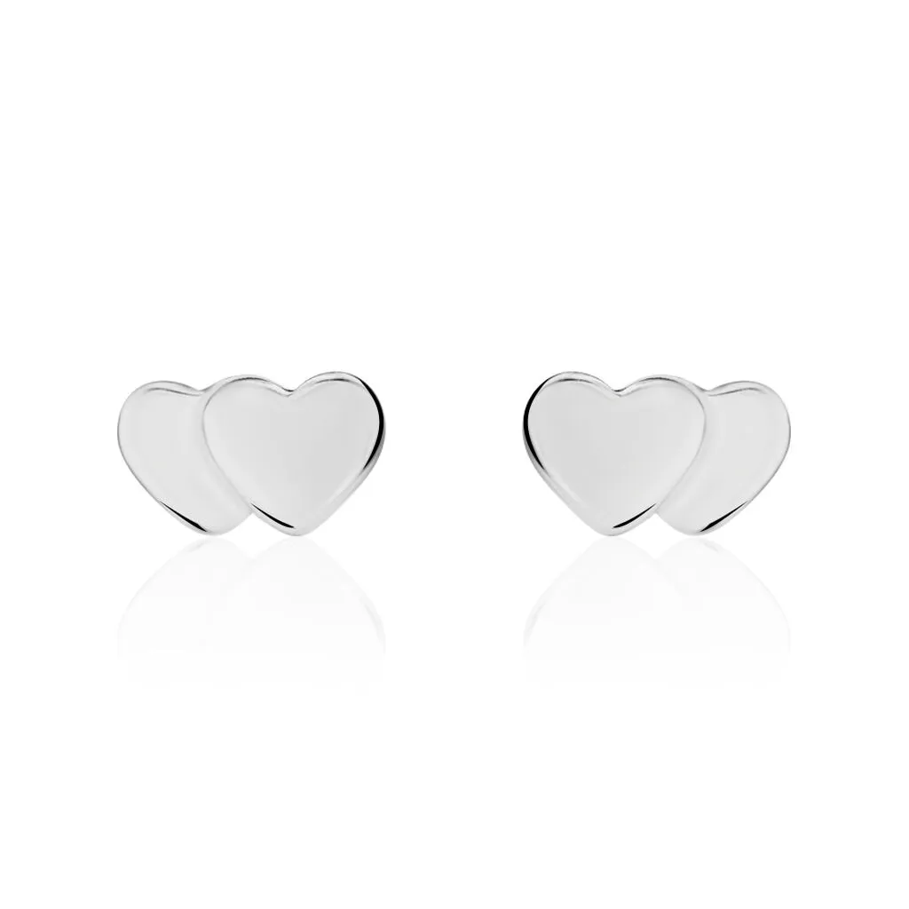 Boucles D’oreilles Puces Argent Blanc 925/1000 Double Cœurs