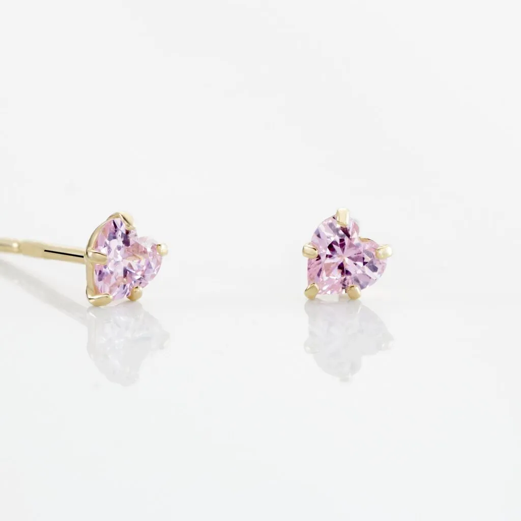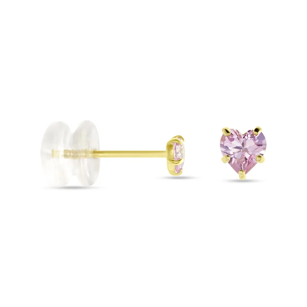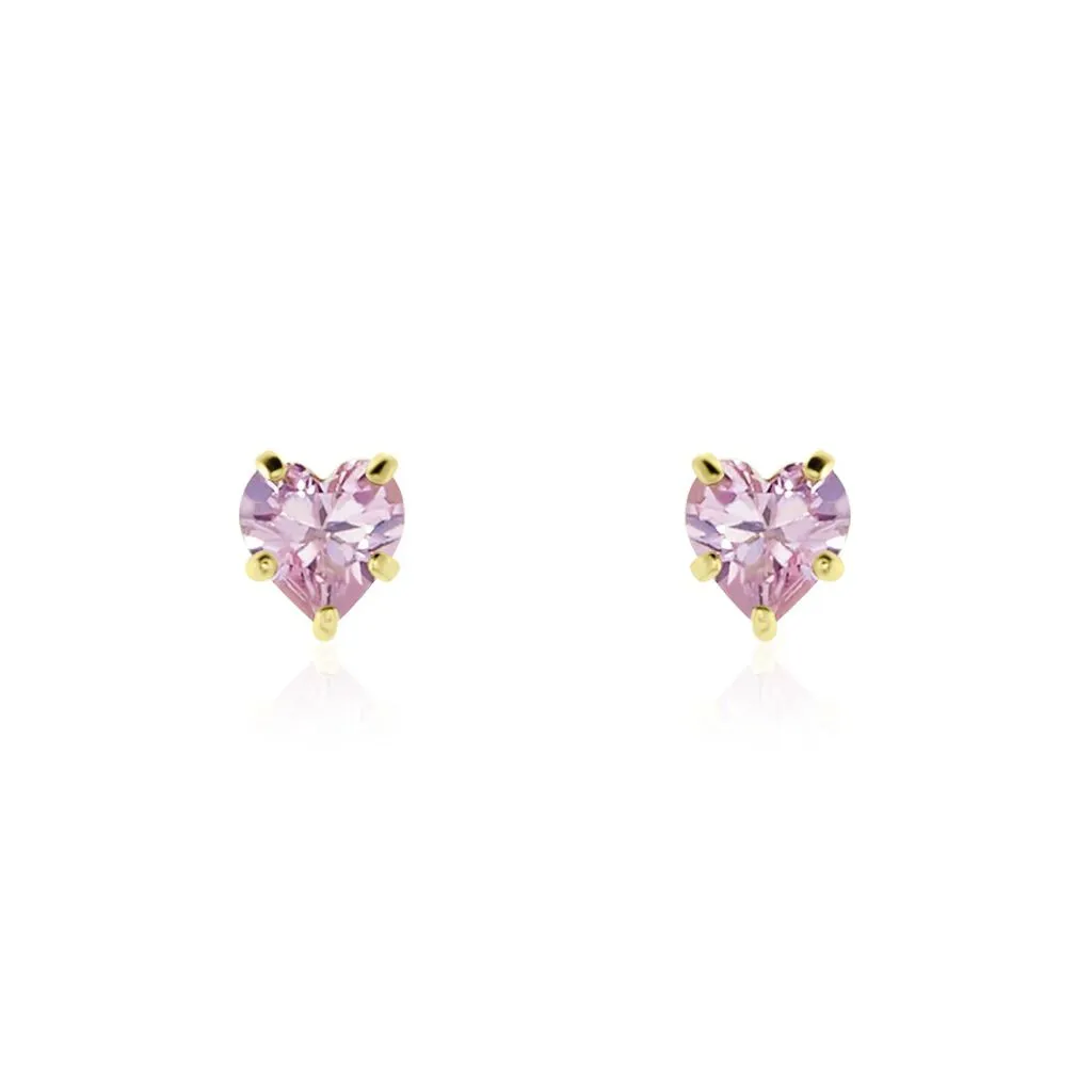 Boucles D’oreilles Puces Or Jaune 375/1000 Cœurs Serti Griffes Oxydes De Zirconium Rose 3mm