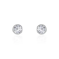 Boucles D’oreilles Puces Daria Serti Clos Or Blanc Oxyde De Zirconium