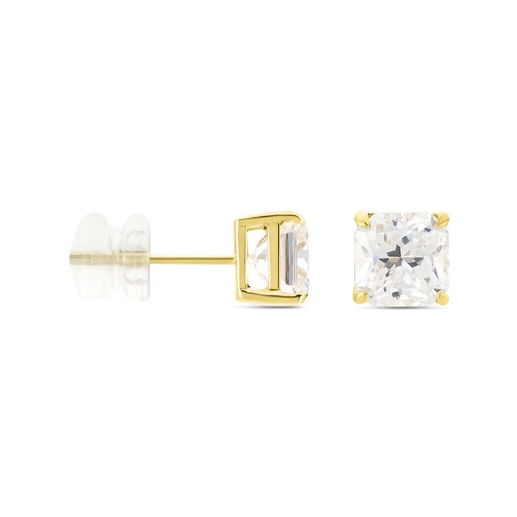 Boucles D’oreilles Puces Doreen Carre Or Jaune Oxyde De Zirconium