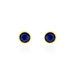 Boucles D’oreilles Or Jaune 375/1000 Puce Saphirs Ronds Sertis Clos 4mm