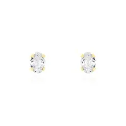 Boucles D’oreilles Puces Or Jaune 375/1000 Ovales Serti 4 Griffes Oxydes De Zirconium 7x5mm