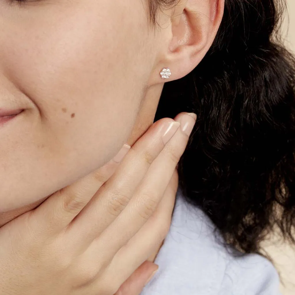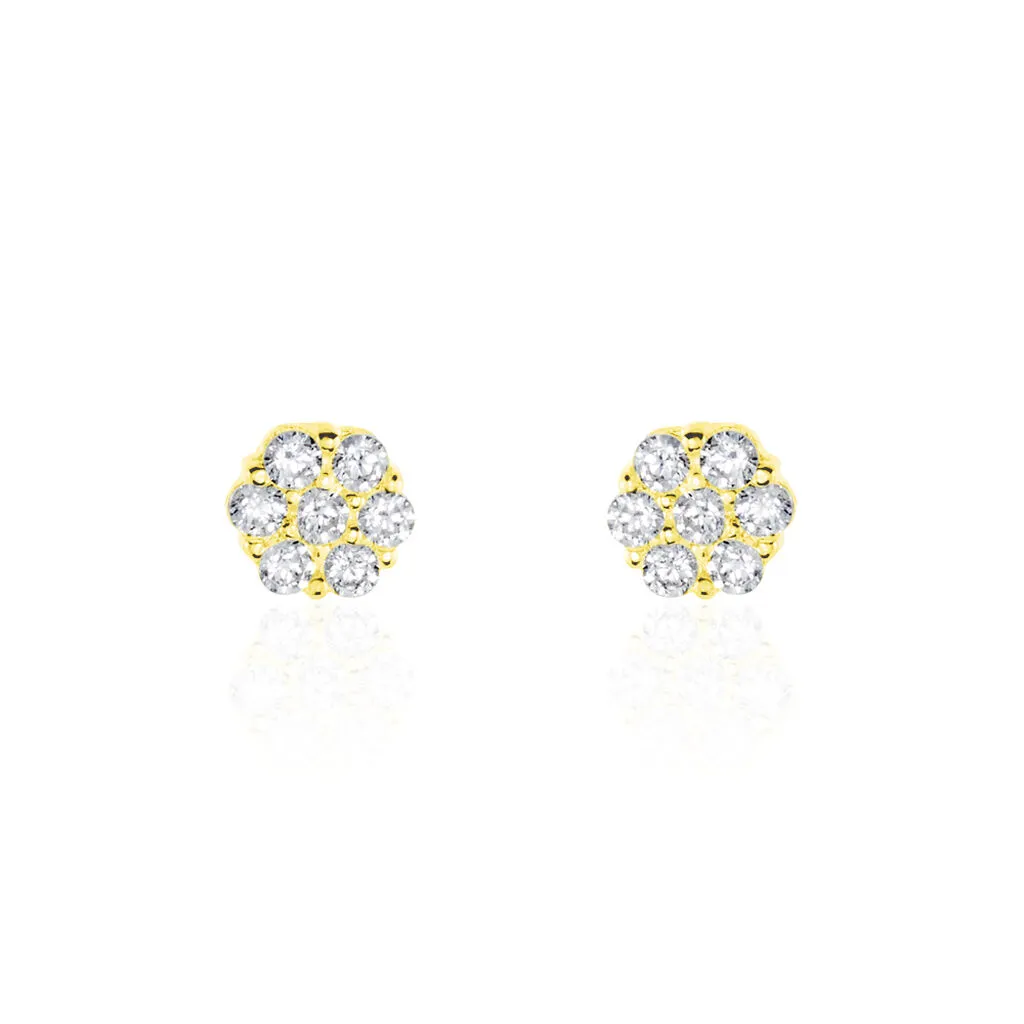 Boucles D’oreilles Puces Eleanor Fleur Or Jaune Oxyde De Zirconium