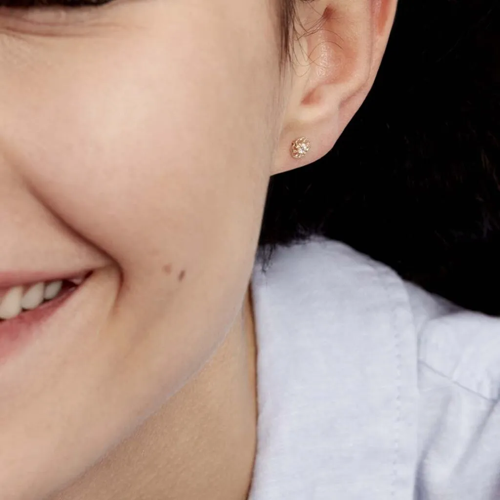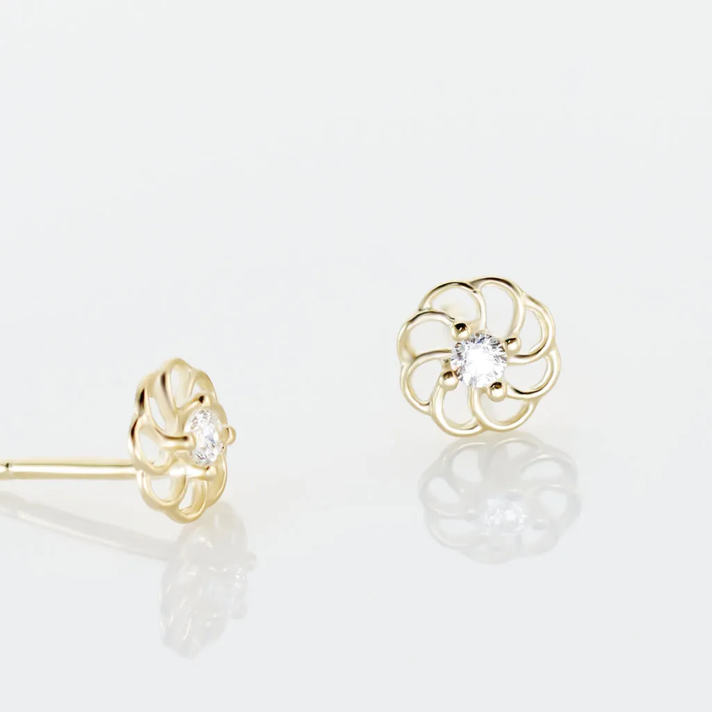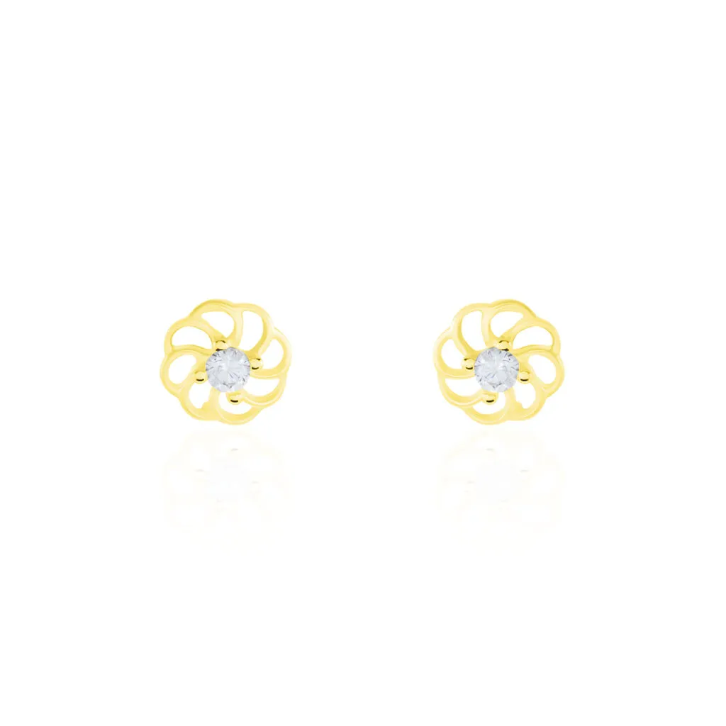 Boucles D’oreilles Puces Eleanor Fleur Or Jaune Oxyde De Zirconium