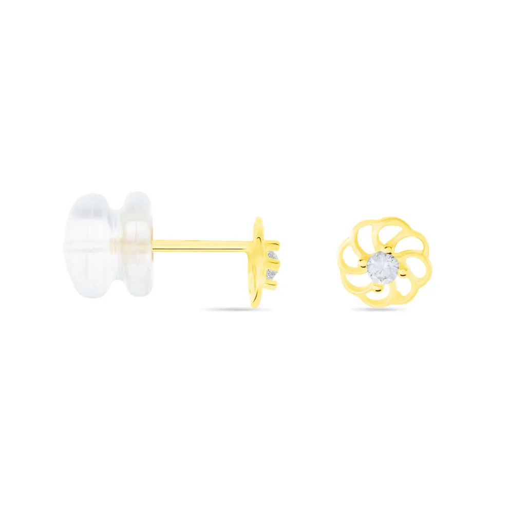 Boucles D’oreilles Puce Or Jaune 375/1000 Fleur 1 Oxyde De Zirconium