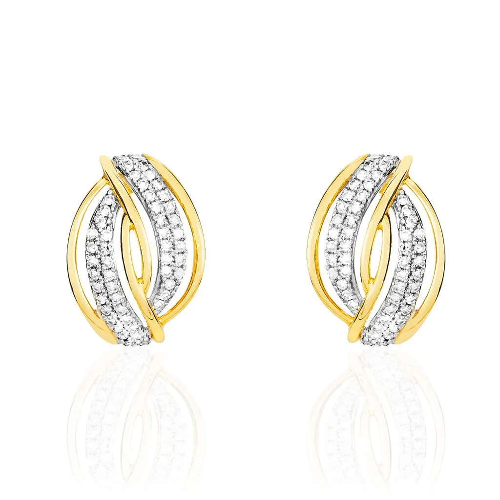 Boucles D’oreilles Or Jaune 375/1000 Croisées Diamants