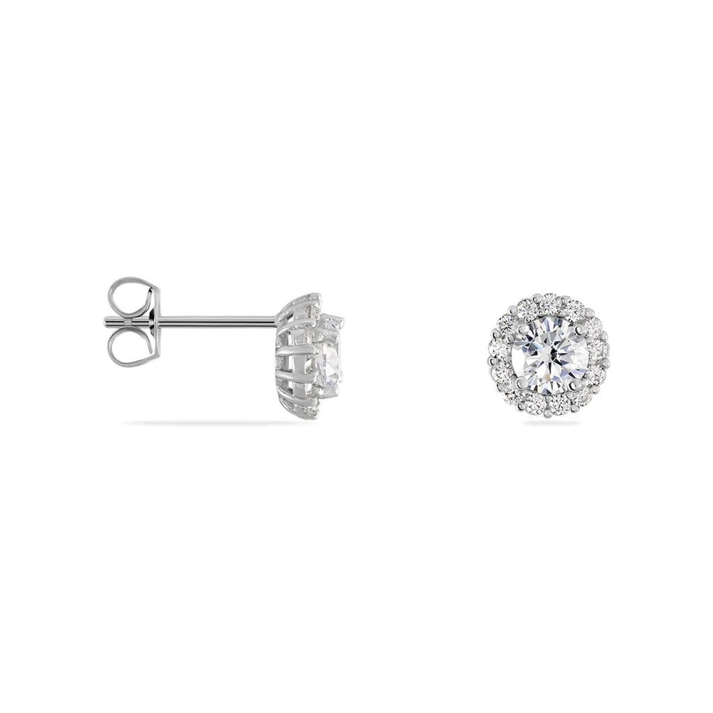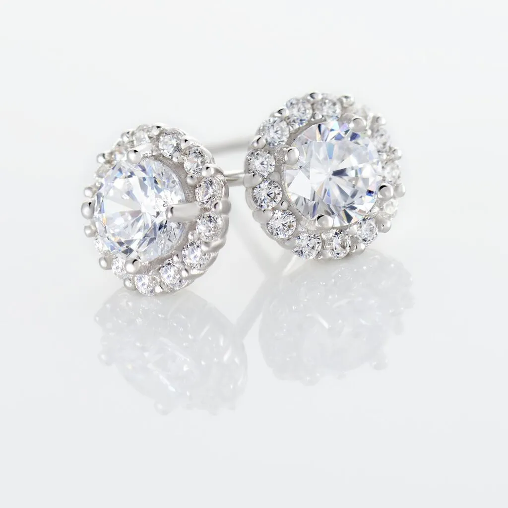 Boucles D’oreilles Puces Argent Blanc 925/1000 Oxydes De Zirconium