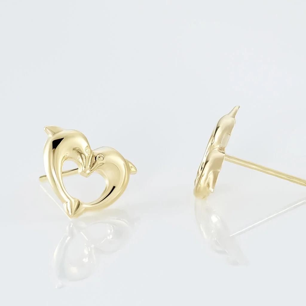 Boucles D’oreilles Puces Fulvie Double Dauphins Or Jaune