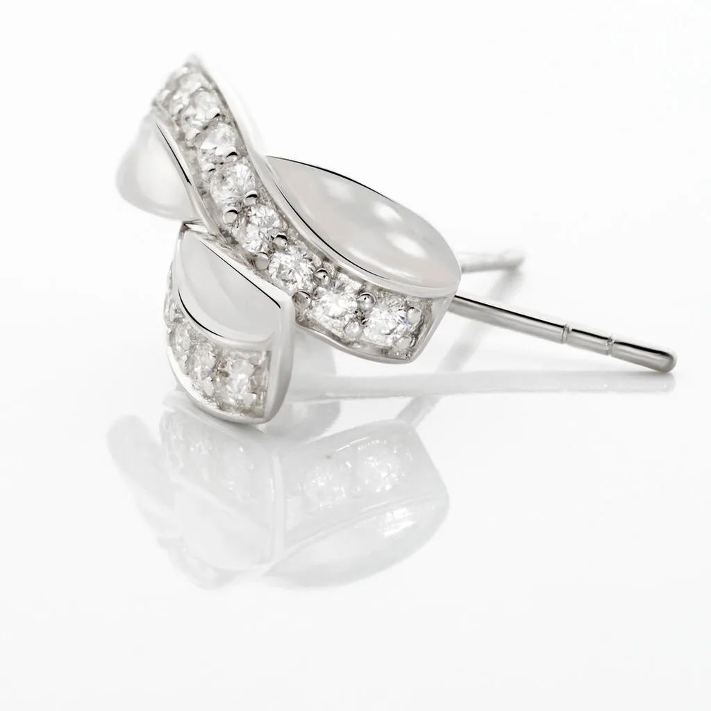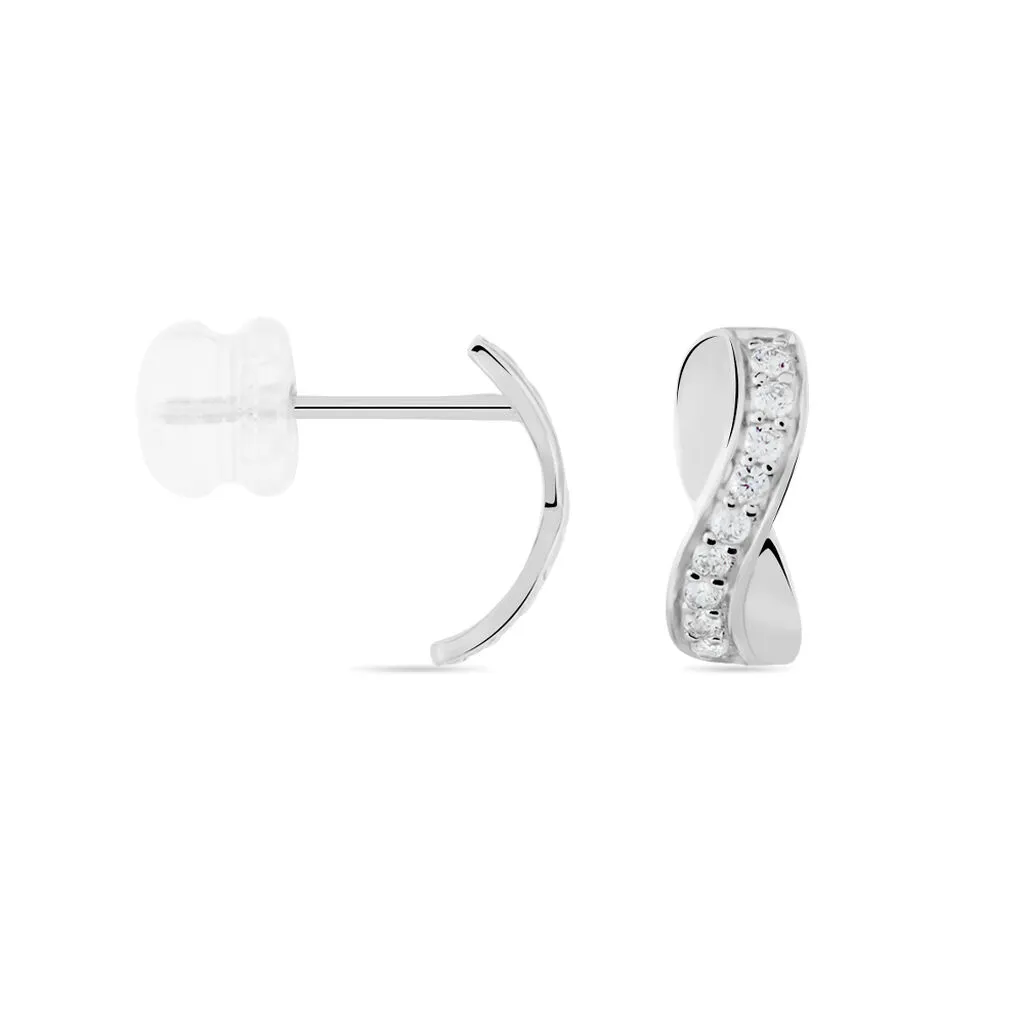 Boucles D’oreilles Or Blanc 375/1000 Avec Poussette Silicone Oxydes De Zirconium Entrelaces