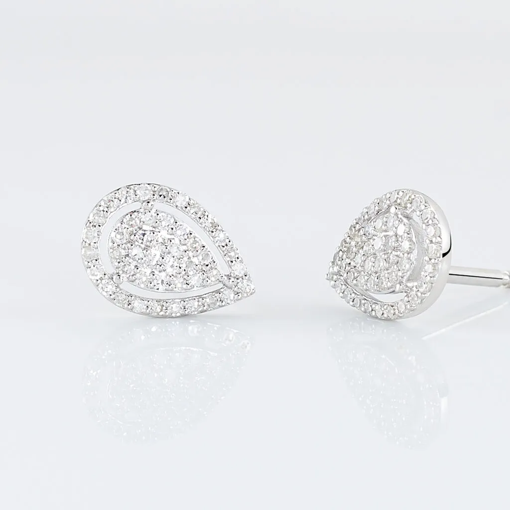Boucles D’oreilles Or Blanc 375/1000 Amandes Pavage Diamants