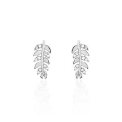 Boucles D’oreilles Argent Blanc 925/1000 Formes Feuilles Oxydes De Zirconium
