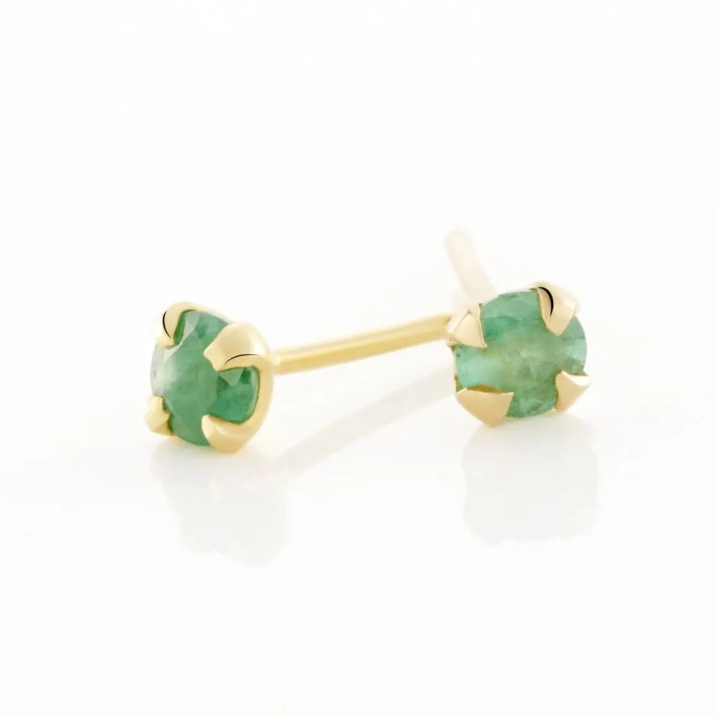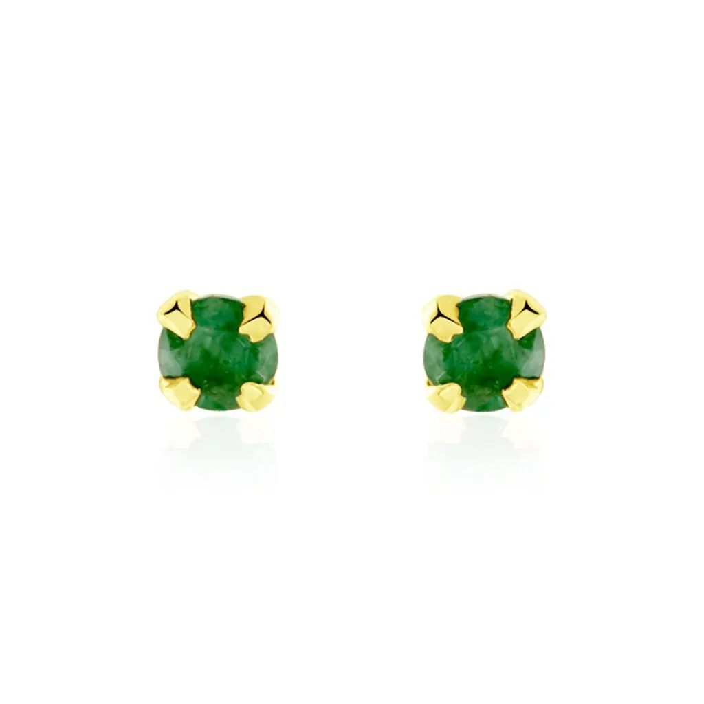 Boucles D’oreilles Or Jaune 375/1000 Emeraude 3mm