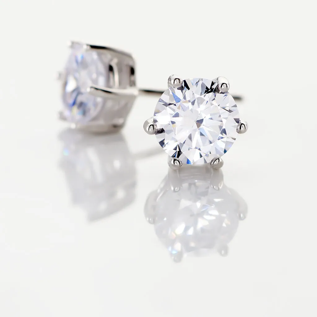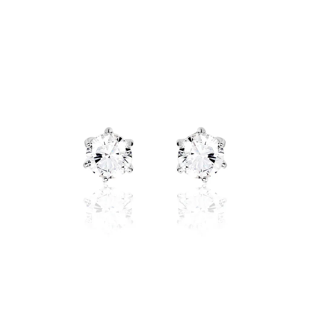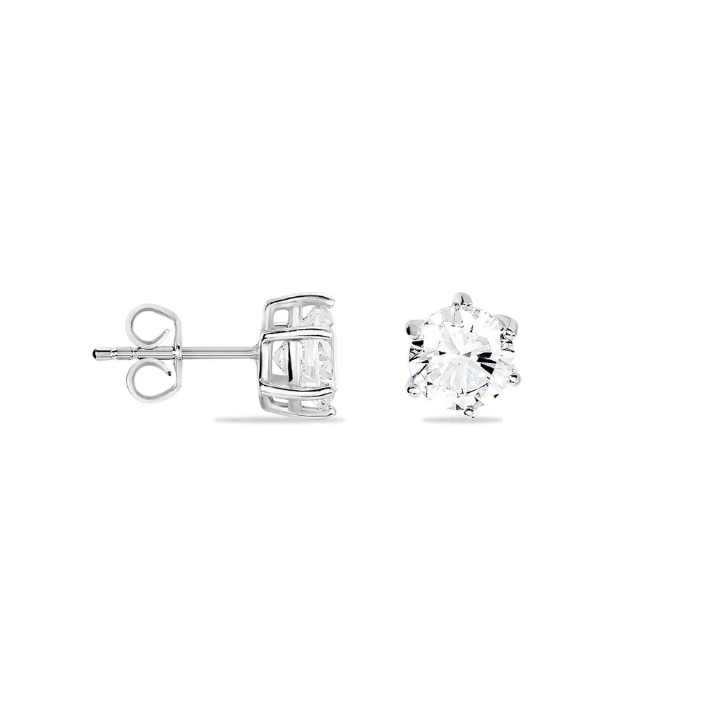 Boucles D’oreilles Puces Argent Blanc 925/1000 6 Griffes 7mm