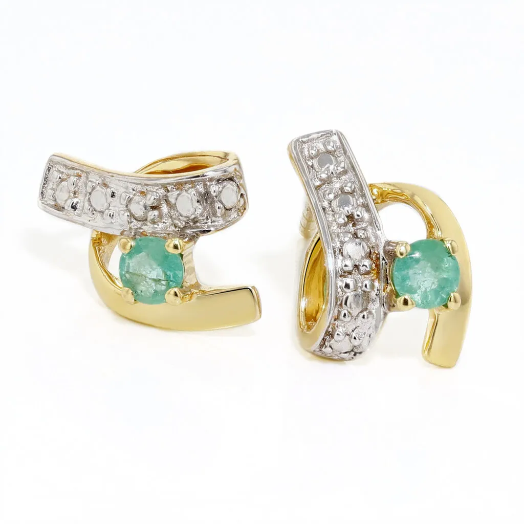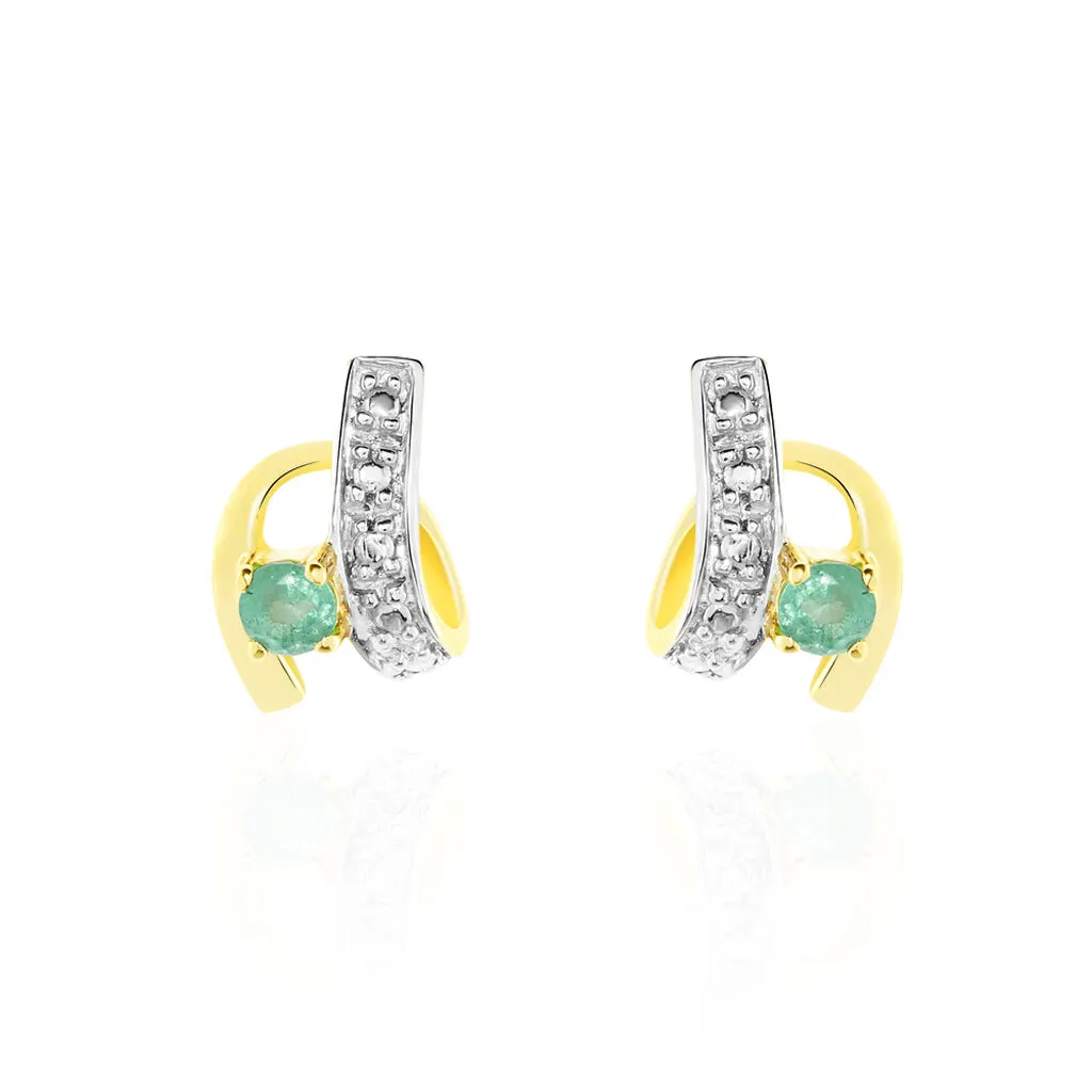Boucles D’oreilles Or Jaune 375/1000 Formes Vagues Emeraudes
