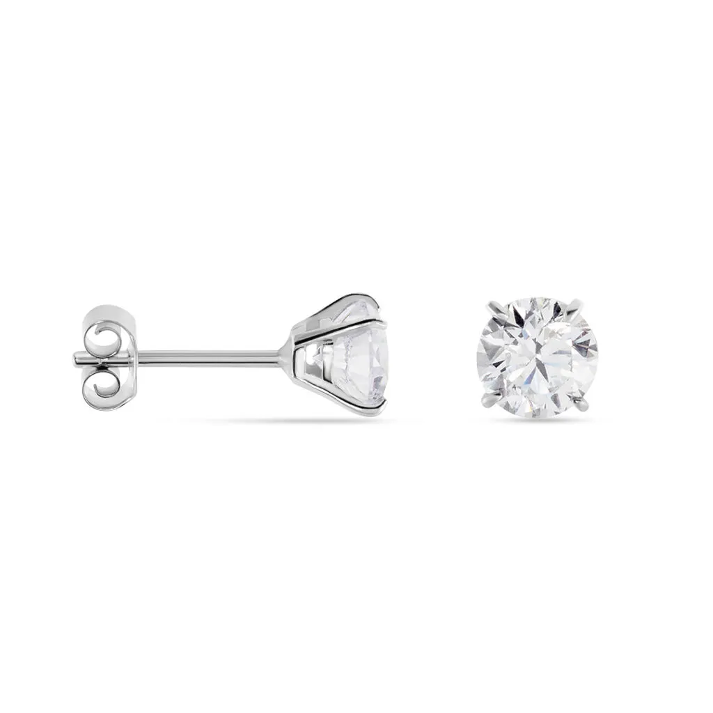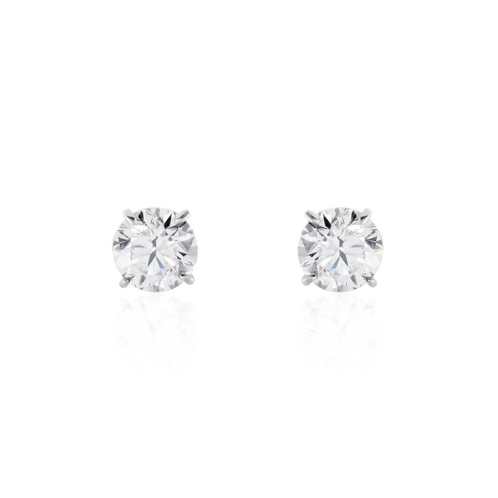Boucles D’oreilles Puces Argent 925/1000 Oxyde De Zirconium Sertis Griffes 6mm