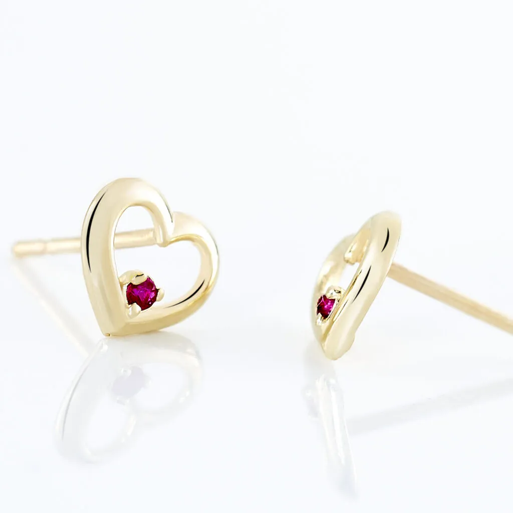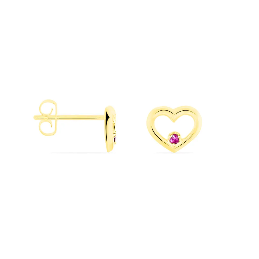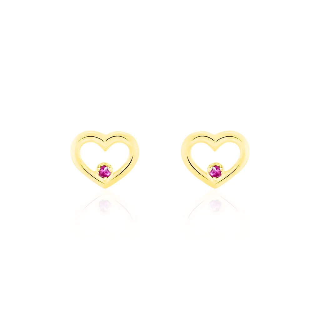 Boucles D’oreilles Or Jaune 375/1000 Cœurs Et Rubis