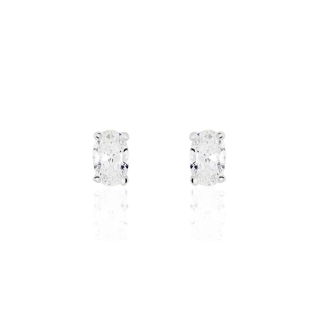 Boucles D’oreilles Puces Argent Blanc 925/1000 Puces Oxydes De Zirconium Formes Ovales 4x6mm